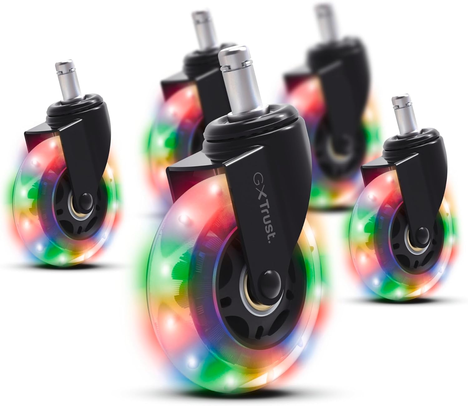 Die Rollen sind für Gaming- und Bürostühle konzipiert und lassen sich schnell austauschen. Bürostuhlrollen mit LED sorgen für einen farbwechselnden Effekt durch kinetische Energie, ohne externe Stromquelle. 🎮
