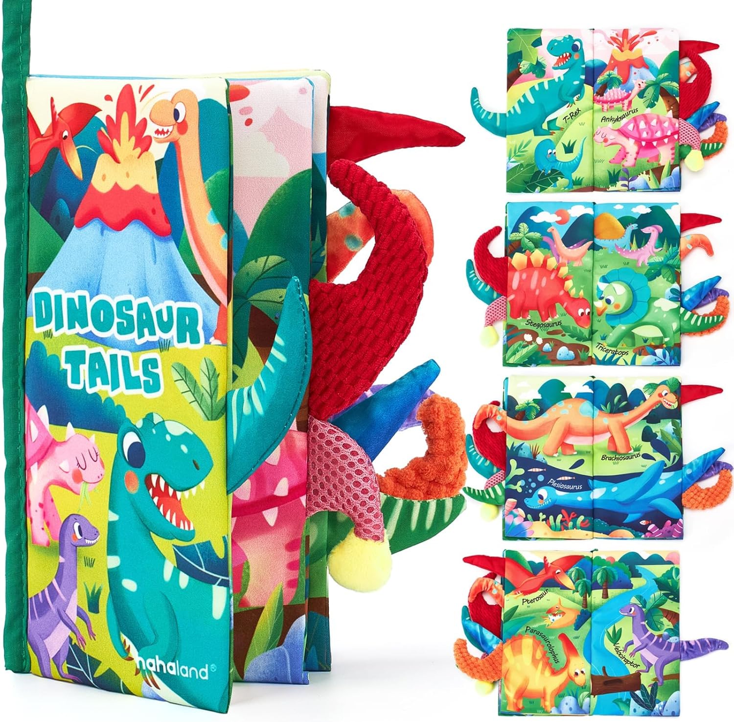 hahaland Baby Spielzeug 0–6 Monate Dinosaurier: sensorisches Stoffbuch mit Schwanz, Knister- und Quiet-Effekten