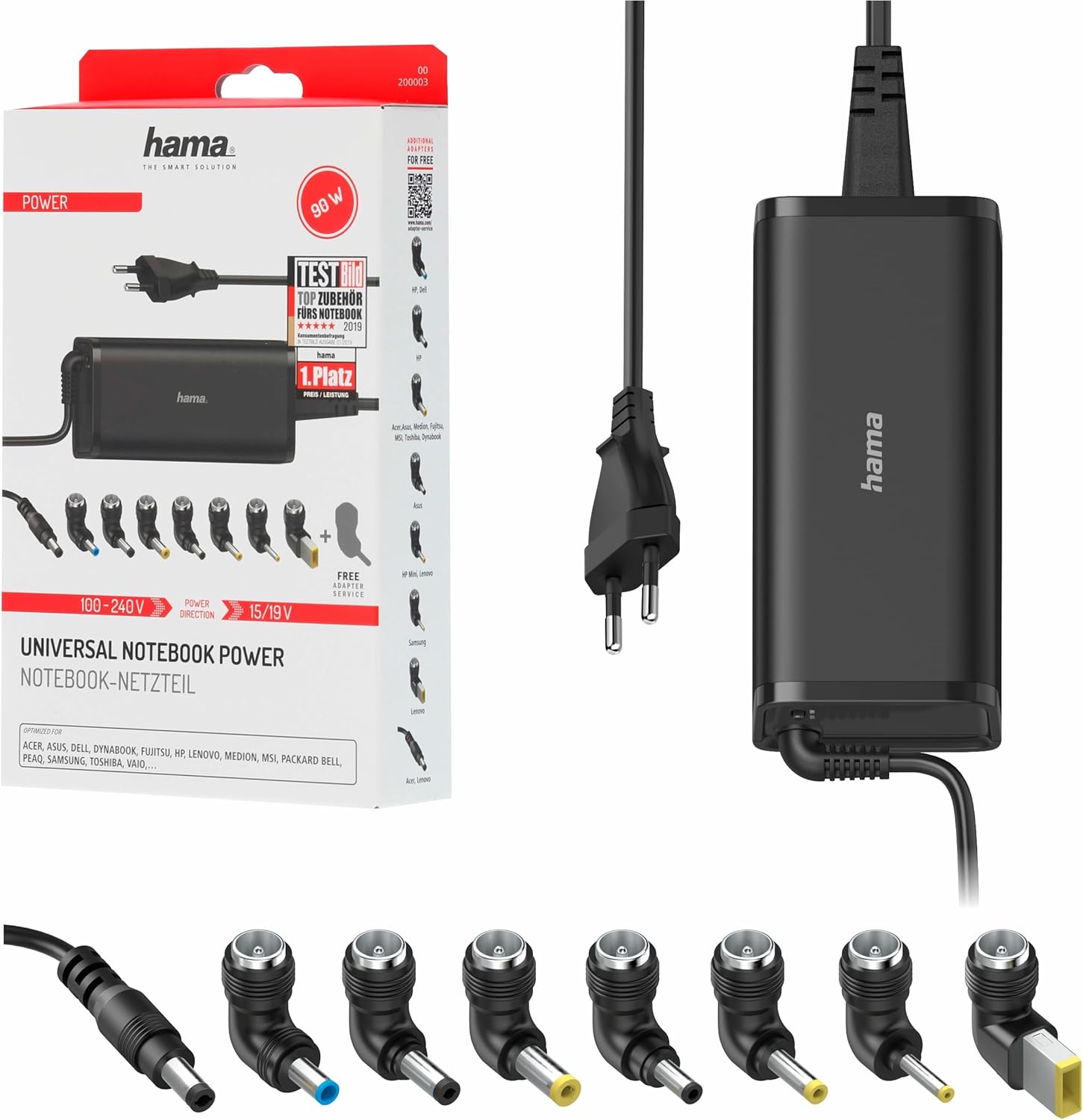 Hama Universal-Notebook-Netzteil für 15V/19V mit 90W – 8 Notebookstecker inklusive