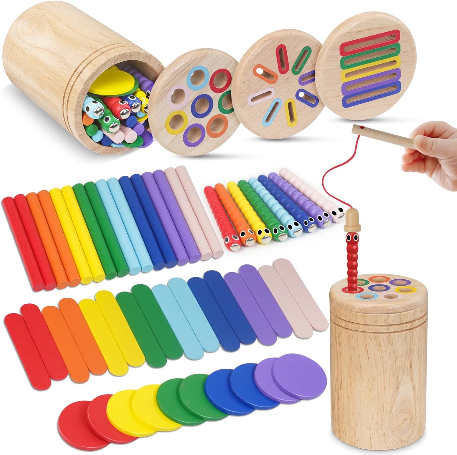 Dieses Montessori-Spielzeug fördert die Feinmotorik und Farberkennung bei Kleinkindern ab 1 Jahr, während es spielerisch Koordination und Richtungssinn trainiert. Die Kombination aus Einsteckstäben, Eisstielen zum Drehen, Münzen zum Einwerfen und Stapeln bietet abwechslungsreiche Übungen für kleine Hände. Montessori Spielzeug ab 1 Jahr macht Lernen konkret und visuell ansprechend, ideal für kurze Übungseinheiten zwischendurch. 🎨