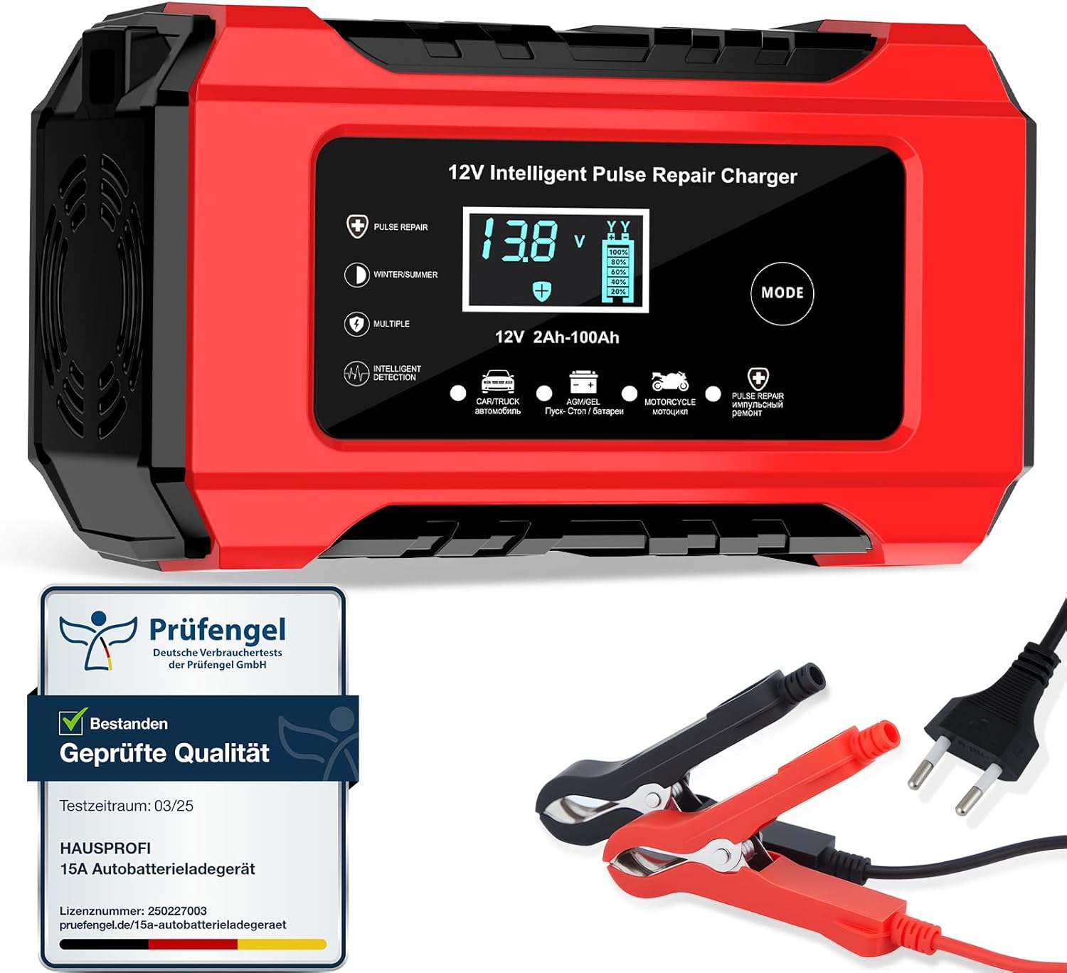 Dieses Ladegerät von HAUSPROFI vereint einfache Bedienung mit Funktionen für unterschiedliche Fahrzeuge. Es liefert eine 6 A Schnellladung für 12 V Bleibatterien und eignet sich für Auto, Motorrad oder Boot, wenn schnelle Reaktivierung gefragt ist. In der Praxis spart das Zeit und reduziert Stillstand, laut Hersteller bis zu 50% schneller als Standardlader. Wie zuverlässig ist die Reparaturfunktion bei stark entladenen Batterien? Das bleibt vom Zustand abhängig, doch die Bedienung ist durch die klare LCD-Anzeige sehr intuitiv. ⚙️