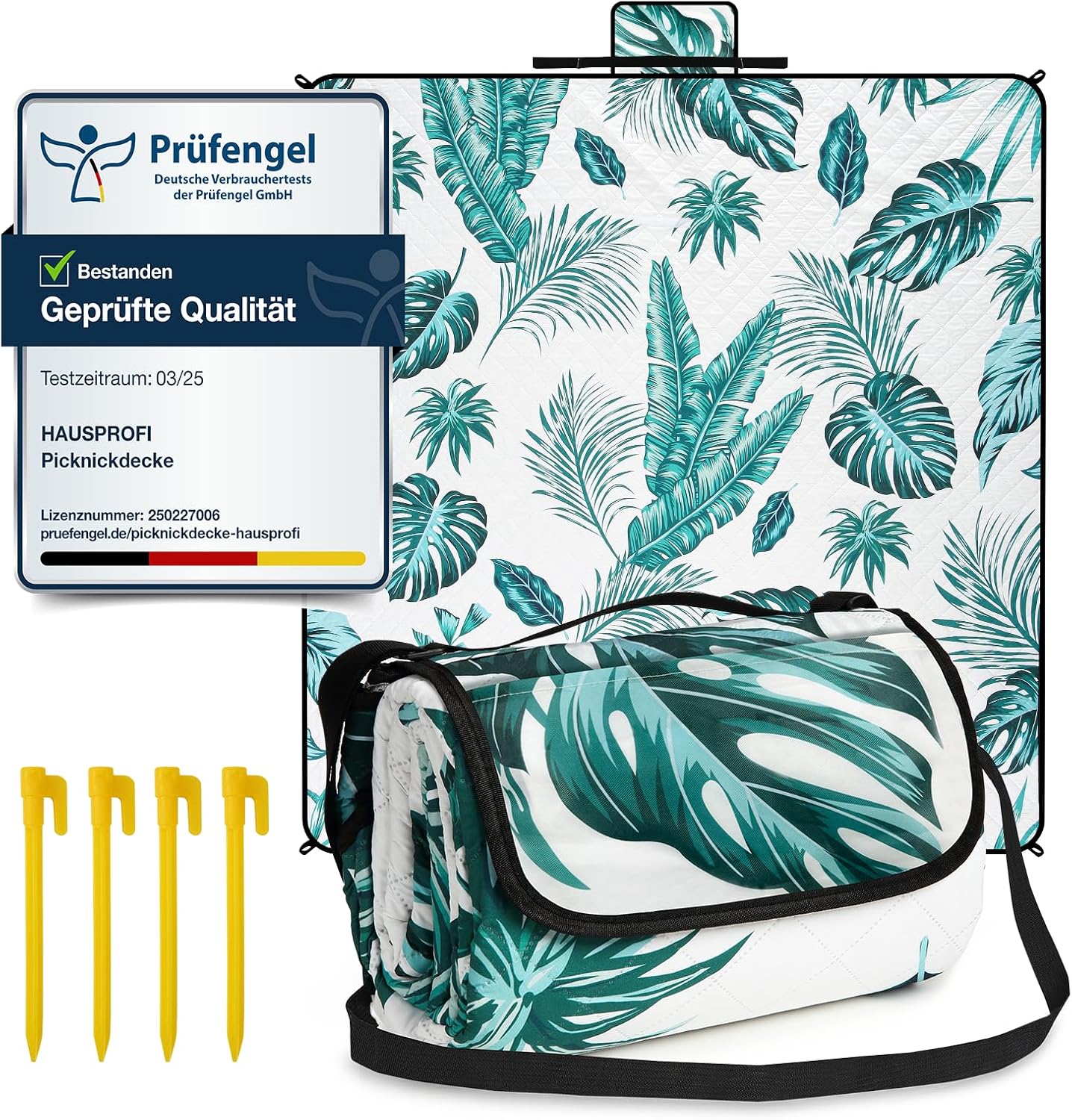 HAUSPROFI Picknickdecke 200×200 cm – wasserdicht & isoliert, inkl. Tragegriff und Heringen