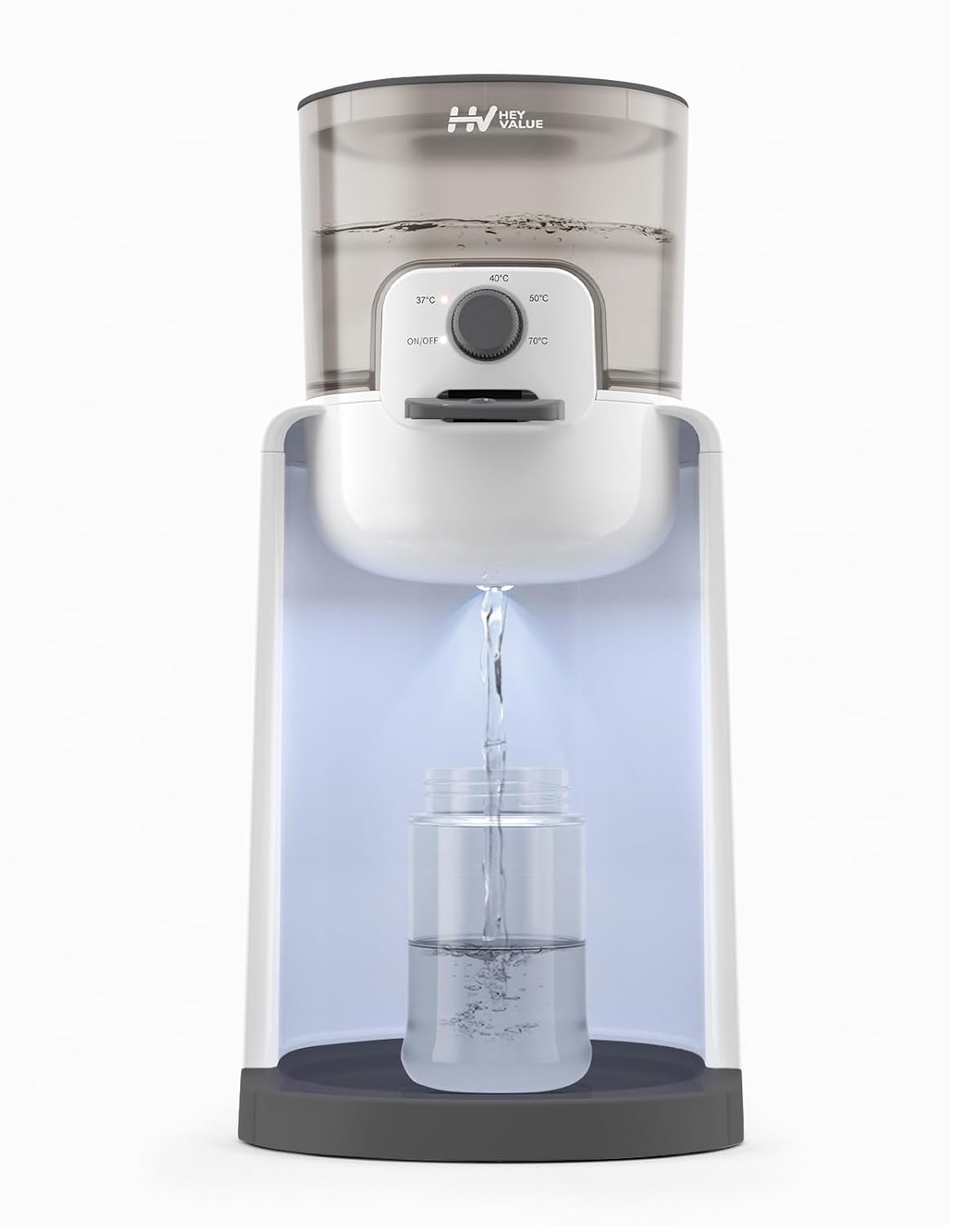 Wenn du einen Flaschenzubereiter suchst, der die Herstellung von Babynahrung deutlich vereinfacht, ist der HEYVALUE eine interessante Option. Laut Hersteller soll die Zubereitung in nur 25 Sekunden starten – damit entfällt das umständliche Nachwärmen in Wasserkochern oder das Hin- und Herlaufen zwischen Geräten.