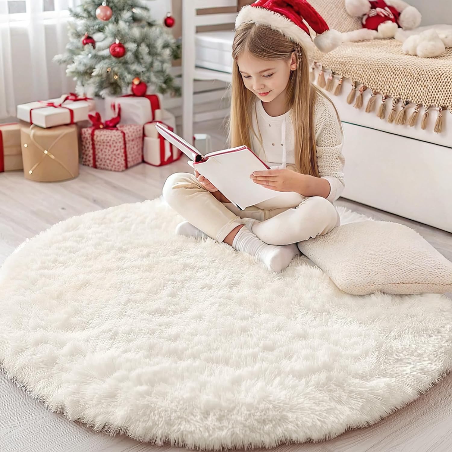 Homaxy Hochflor Flauschig Teppich mit Anti-Rutsch-Unterseite, waschbar – 120 cm rund, Creme