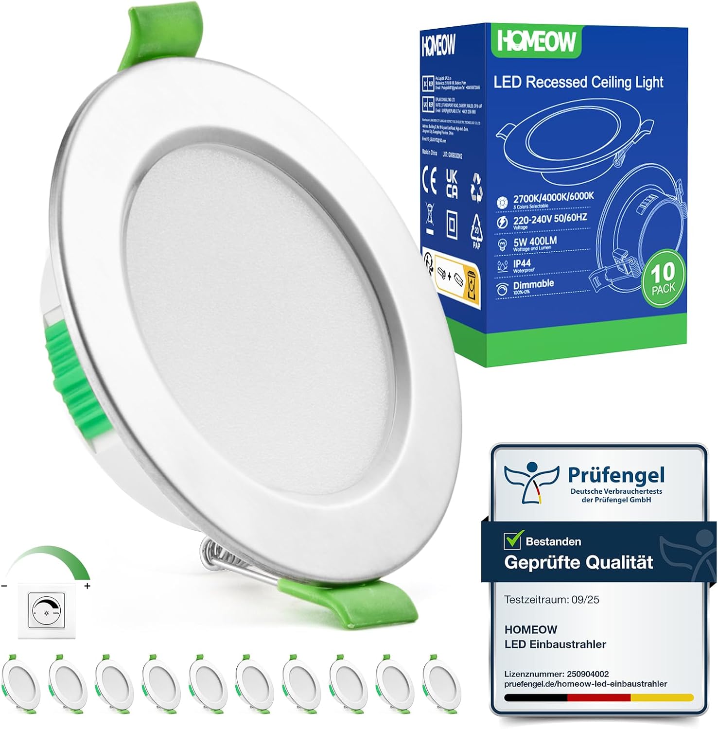 HOMEOW 10er Set Einbaustrahler LED dimmbar (230V) – 3 Farbtemperaturen, IP44, ultraflach