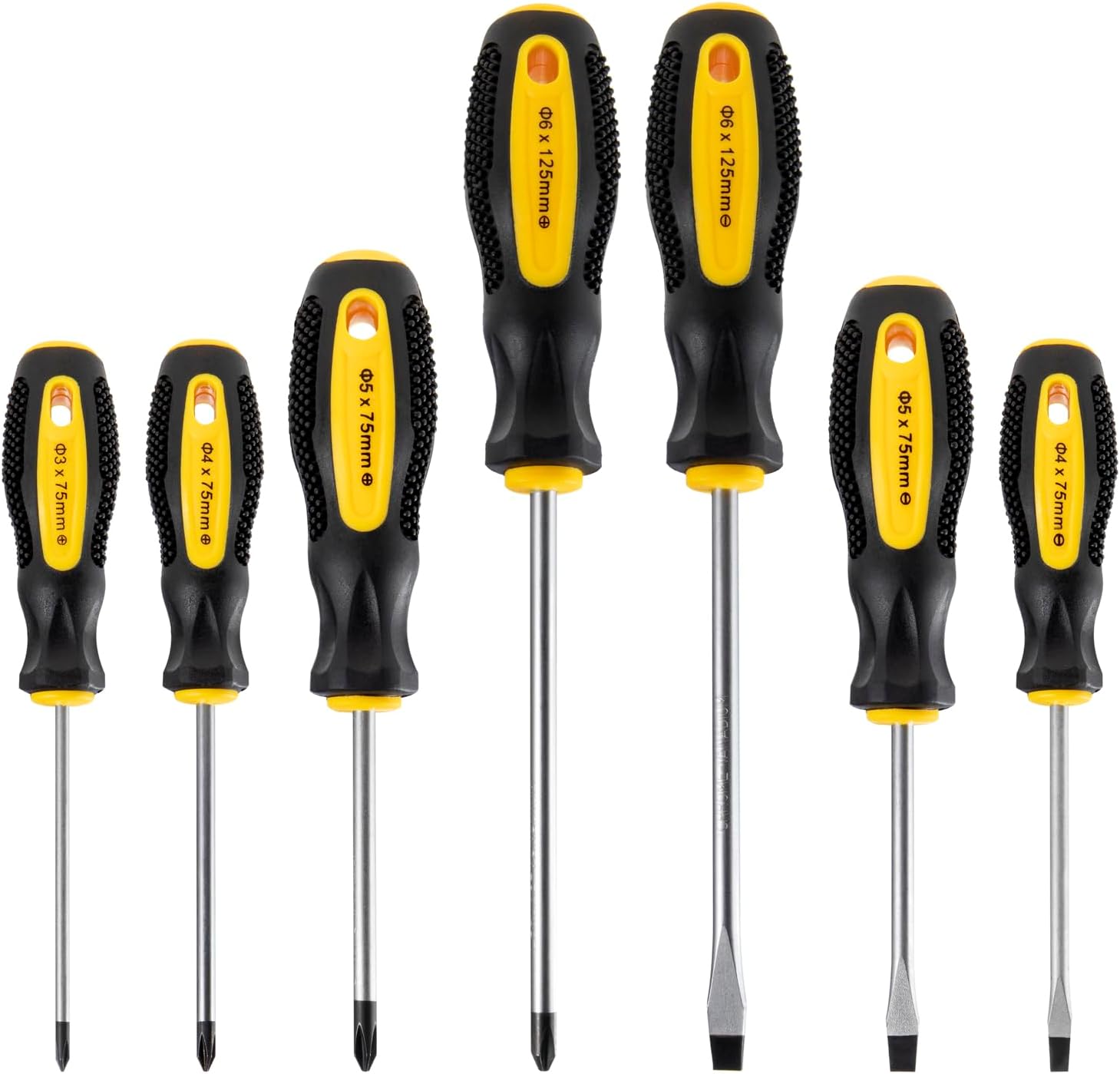 HPMAISON 7-teiliger Schraubendreher-Satz aus Chrom-Vanadium-Stahl mit magnetischer Spitze (4 Kreuz, 3 flach)