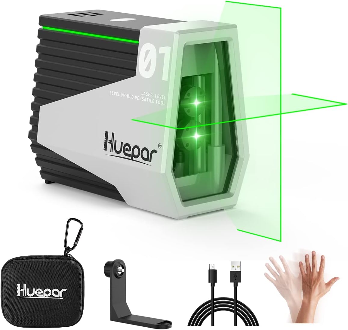 Huepar grünes Kreuzlinien-Nivelliergerät E011G mit Bewegungssensor & Pulsmodus – selbstnivellierend