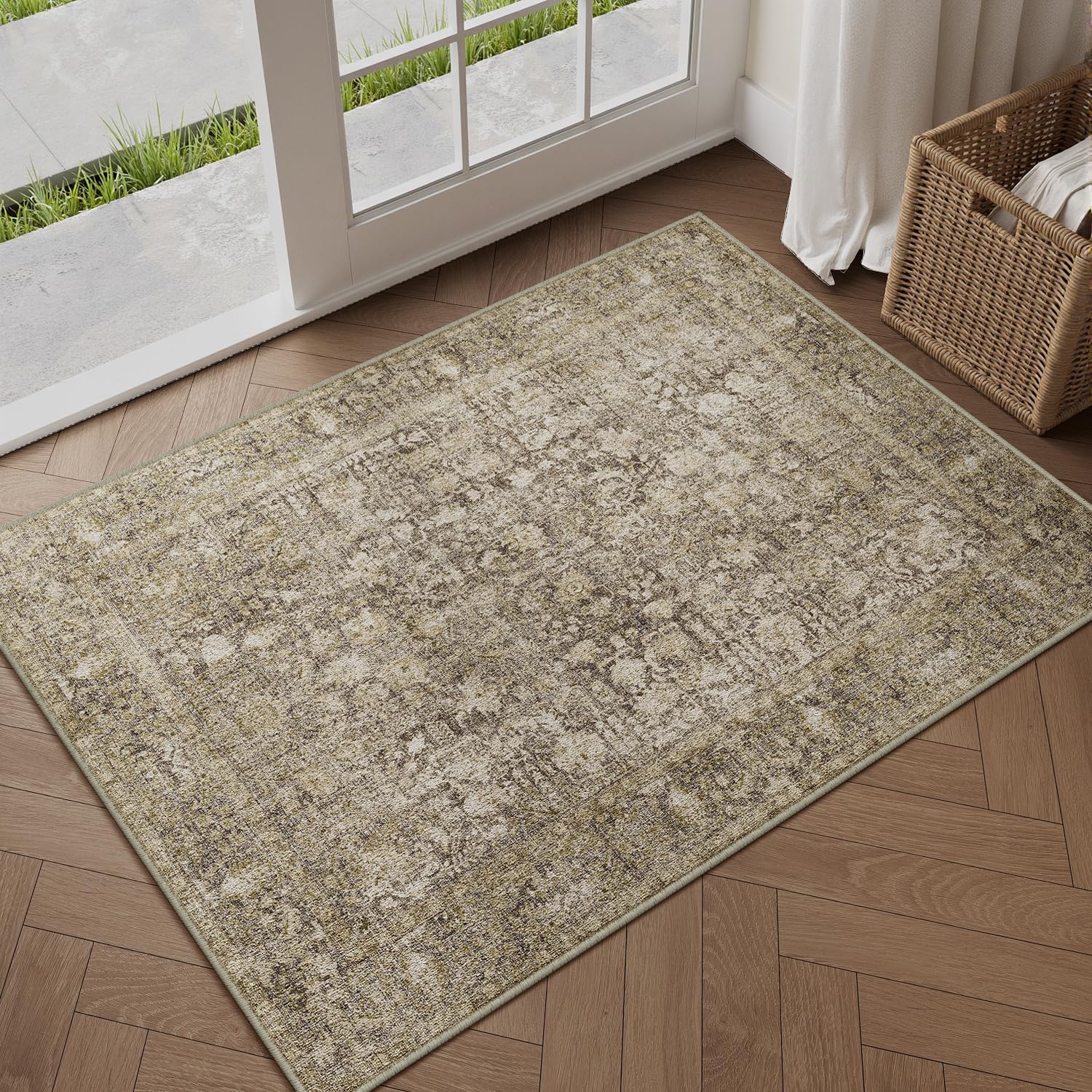 HUGEAR Vintage brauner waschbarer Teppich 60x90 cm – rutschfest für Flur, Bad & Schlafzimmer