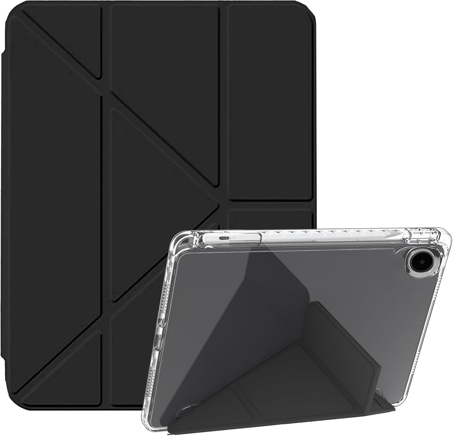 Die Hülle setzt auf ein Flip-Panel mit einem „dreieckigen“ Stützdesign. Dazu kommt magnetische Adsorption, die den Halt gewährleisten soll – „egal ob horizontal oder vertikal“. Das klingt nach einem sinnvollen Ziel: stabiler Halt für unterschiedliche Nutzungsweisen, zum Beispiel beim Schauen von Videos oder beim Tippen im Sitzen.