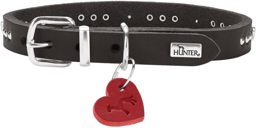 HUNTER Hundehalsband Aalborg Hearts (Größe 32) – schwarzes Softvollrindleder mit Herz-Details