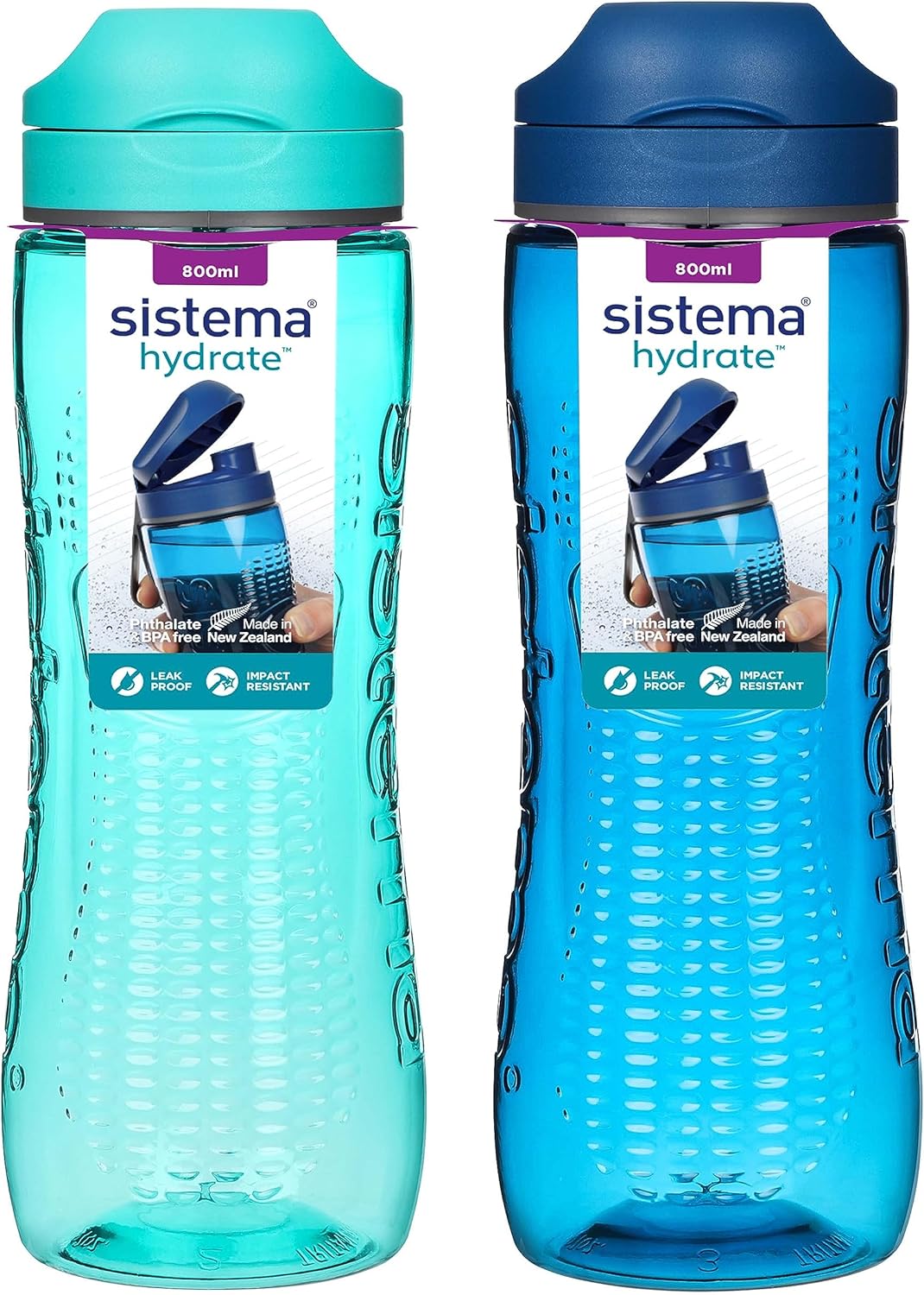 Hydrate Tritan Swift Wasserflasche-System (800 ml, Ocean Blue & Misty Purple) – auslaufsicher, BPA-frei, 2er-Set