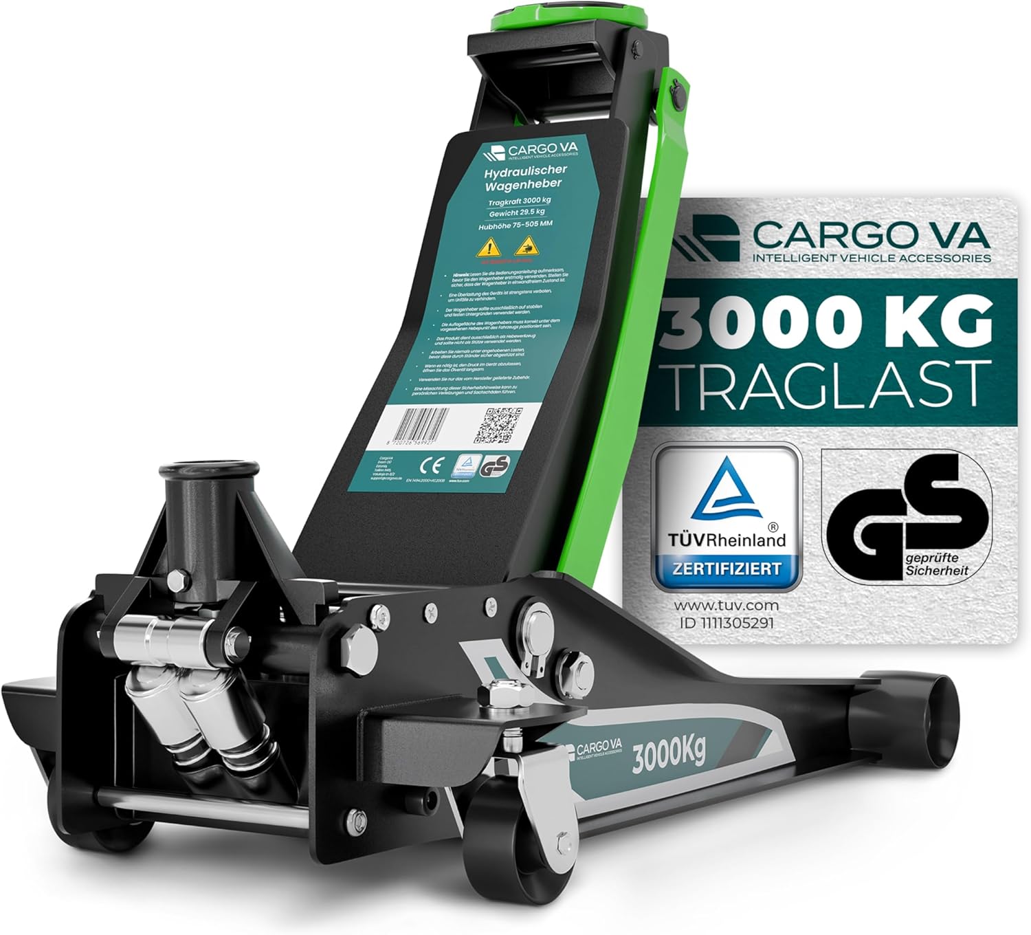 Hydraulischer Wagenheber CargoVA 3T PRO (75–505 mm) TÜV & GS zertifiziert