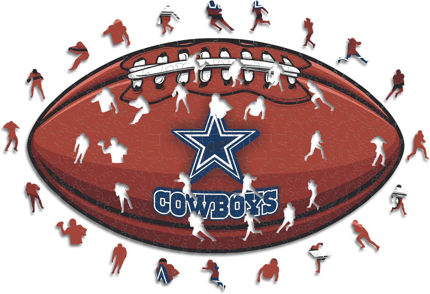 Beim Motiv „Dallas Cowboys Crest“ geht es um ein typisches Vereins-/Emblem-Design aus dem American-Football-Umfeld. Laut Beschreibung stellt jedes Puzzleteil Elemente des American Football dar und zudem Posen berühmter Spieler. Genau das macht es interessant, wenn du nicht nur ein neutrales Puzzlebild suchst, sondern ein Motiv, das direkt Fan-Charakter hat.