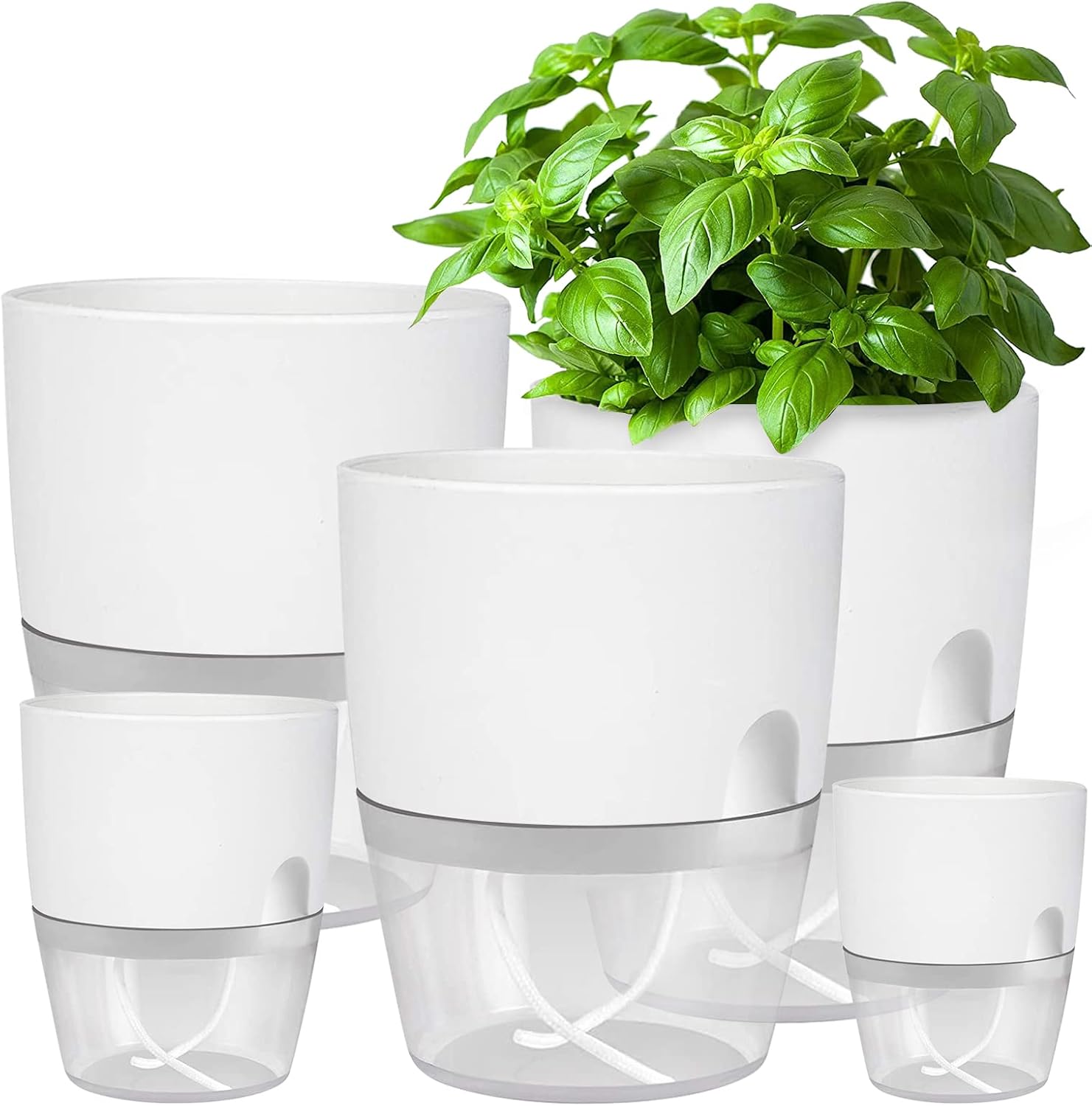 iDattel selbstbewässernder Blumentopf mit Bewässerungssystem – Kräutertopf Küchenfensterbank, 5er Set (weiß)