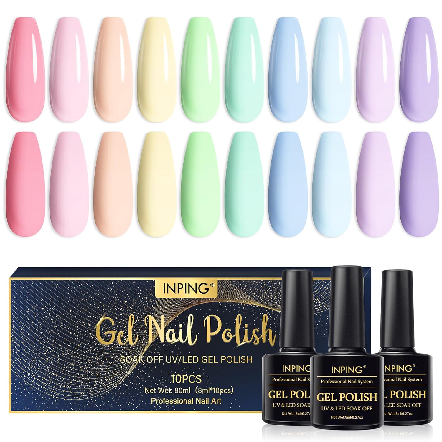 INPING UV Nagellack Pastell Set (10 Stück) – Makronen-Pastellfarben für Gel-Nägel & Nail Art