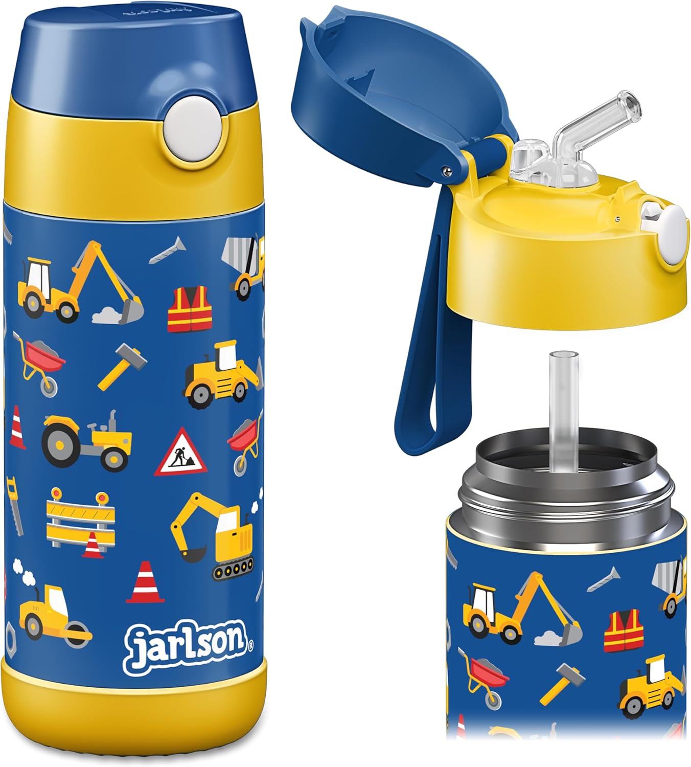 Jarlson Kinder-Trinkflasche Charli aus Edelstahl (350 ml) mit Strohhalm – auslaufsicher, thermisch isoliert