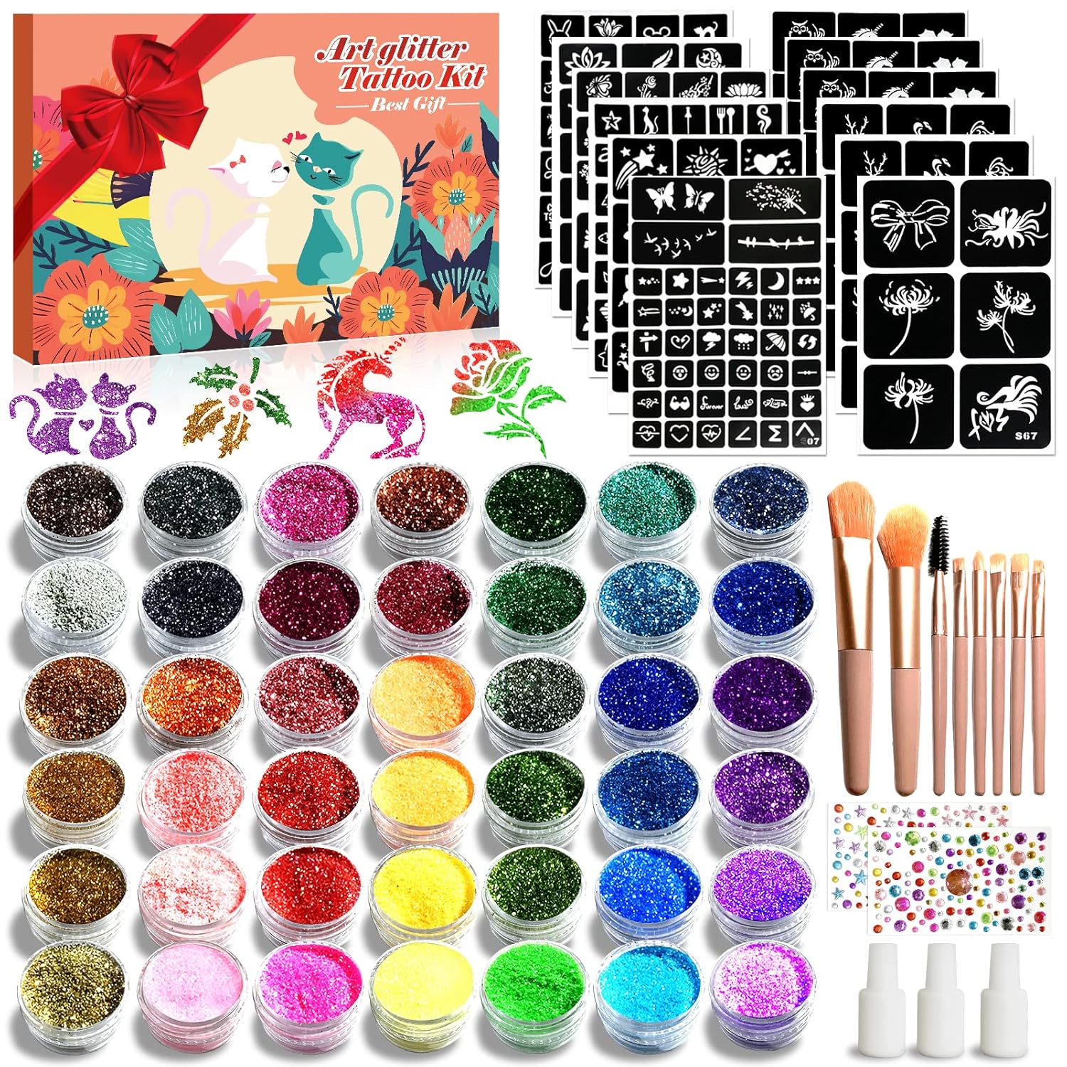 - Glitzer Tattoo Set Kinder 36 Farben 🎨