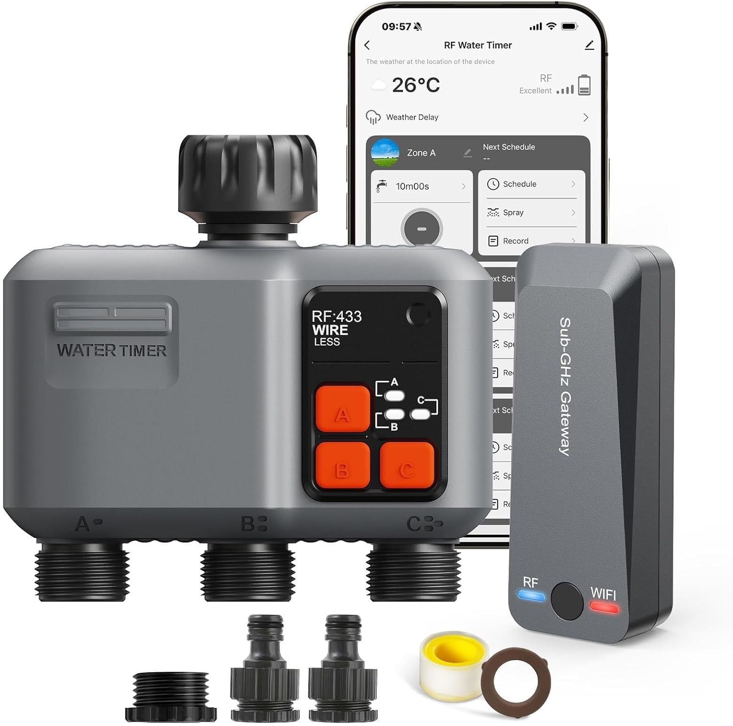 johgee Bewässerungscomputer WLAN mit 3 Ausgängen (300M RF) & Smart-Life/Alexa