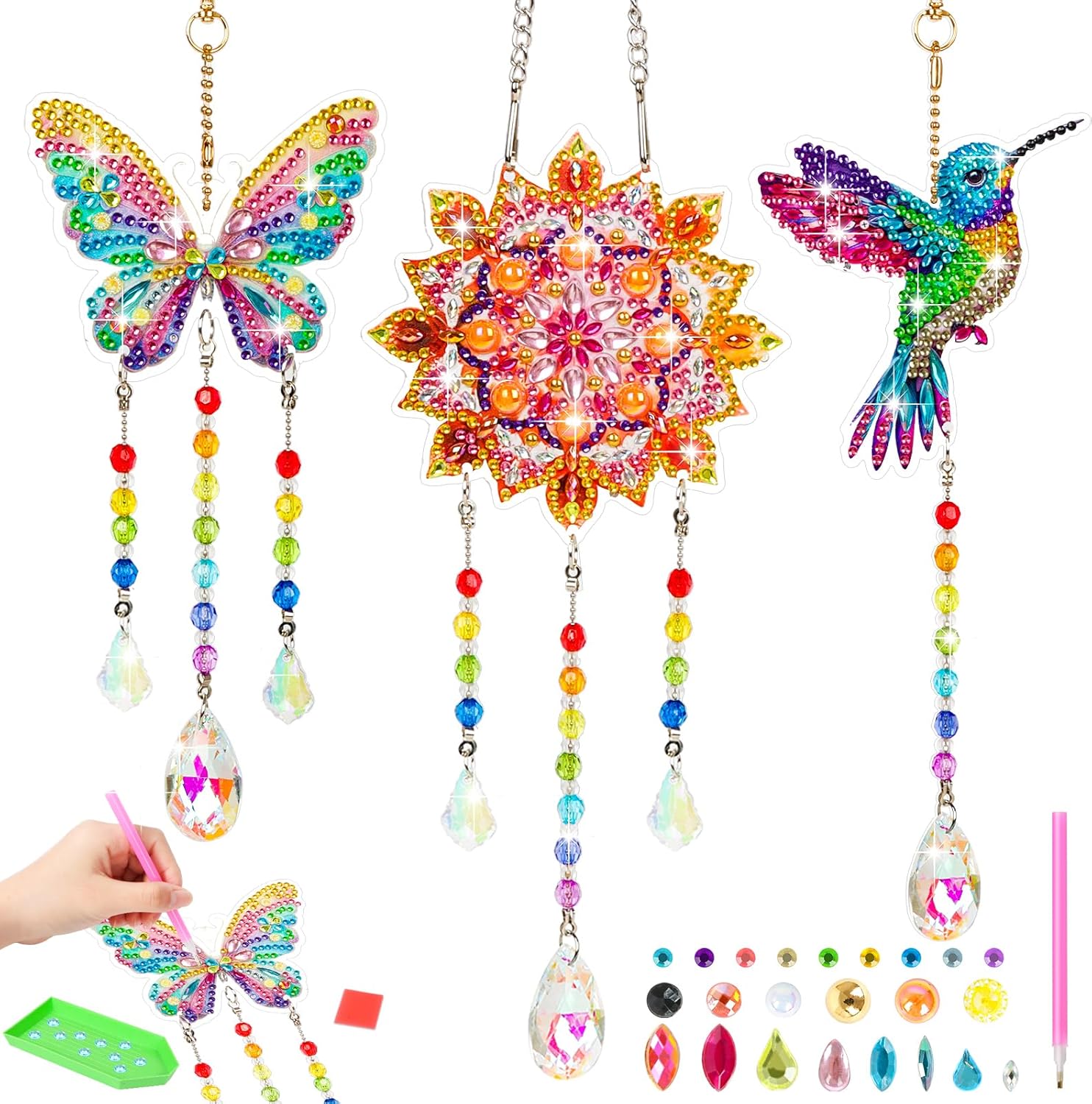 Jovicos Diamant Painting Kinder Windspiel-Set für Mädchen (6–11 Jahre) mit 3 Motiven
