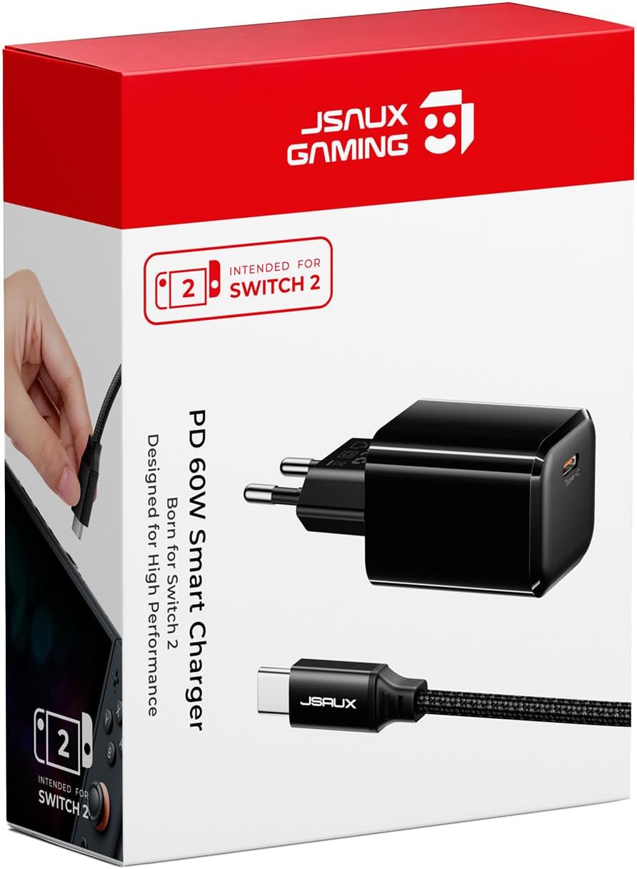 JSAUX 60W USB‑C Ladegerät mit GaN für Switch 2 (TV-Modus) – inkl. 2m USB‑C Kabel
