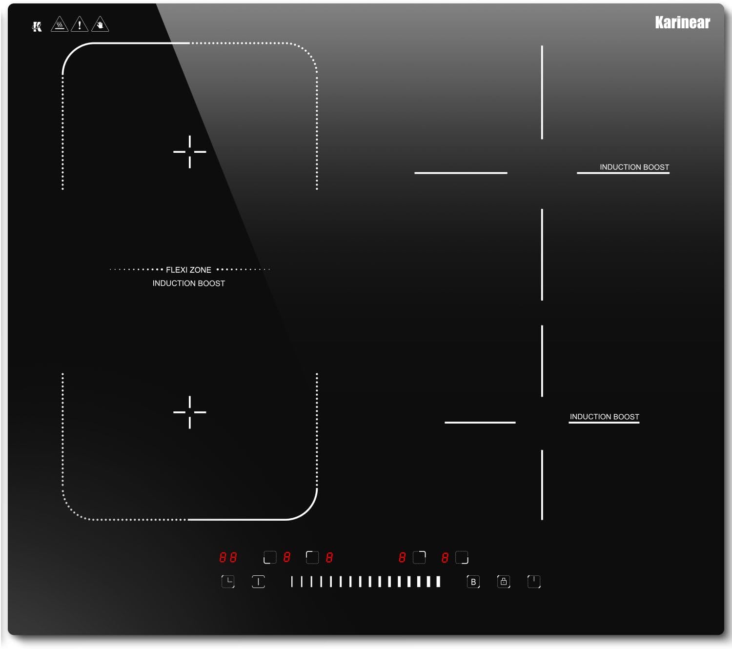 Karinear Induktionskochfeld 4 Zonen (7200 W) mit Flexzone, 60 cm autark – Schieberegler, Boost & Timer