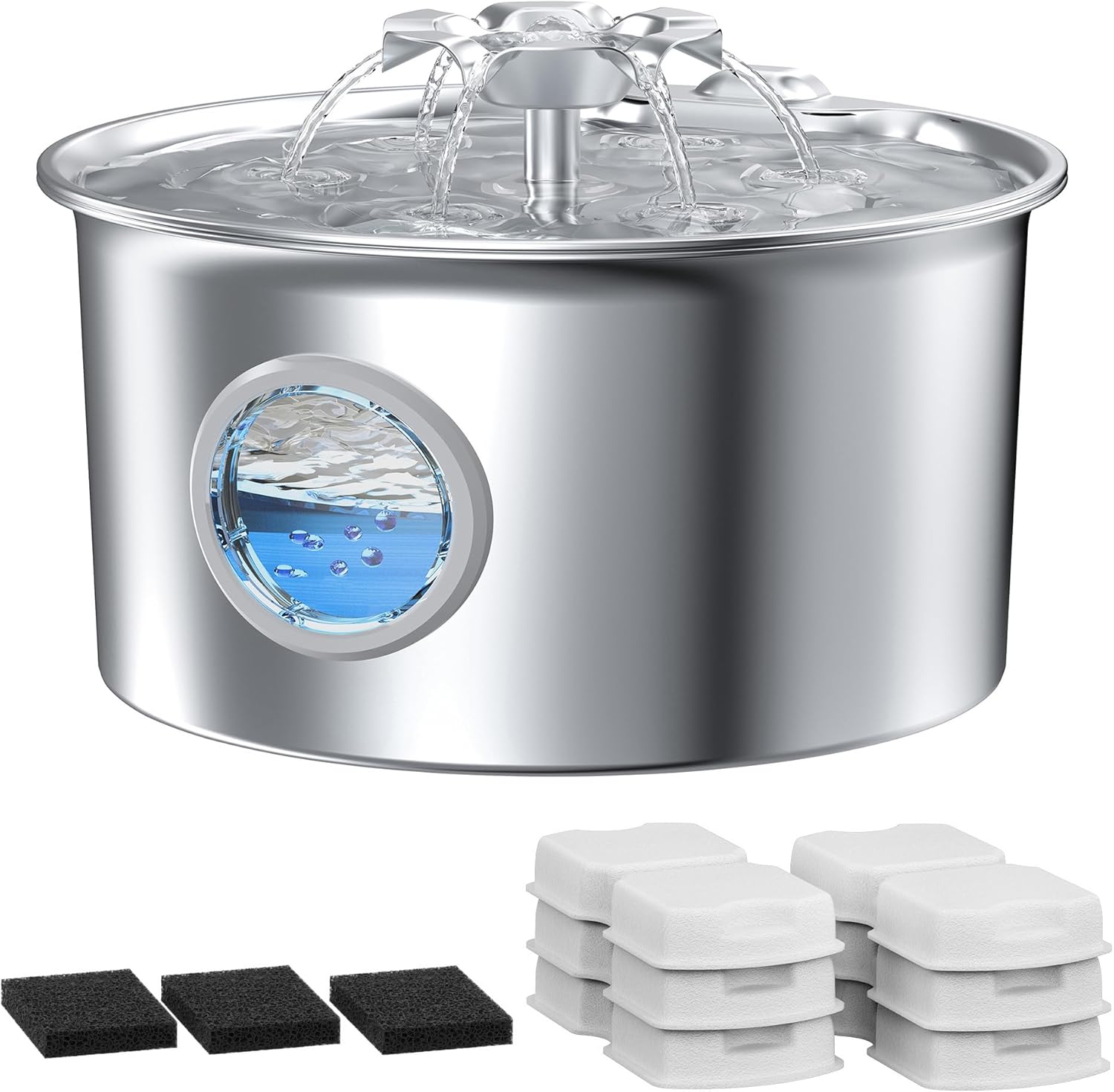 Dieser Edelstahl-Katzenbrunnen mit 2,6 Liter Fassungsvermögen kombiniert langlebiges Material mit einem fließenden Wasserfall-Design, das speziell darauf ausgelegt ist, Katzen zum Trinken zu animieren. Er eignet sich für Haushalte mit ein bis zwei Katzen und bietet eine ruhige, kontinuierliche Wasserzufuhr für mehrere Tage, was das tägliche Auffüllen reduziert.