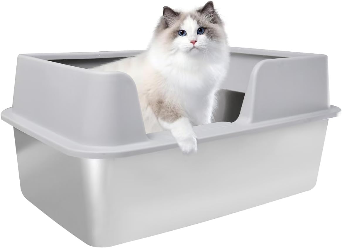 - PTLOM Edelstahl-Katzentoilette XXXL mit niedriger Einstiegskante, 35 cm hohen Rändern (58×38×35 cm) – auslaufsicher & leicht zu reinigen