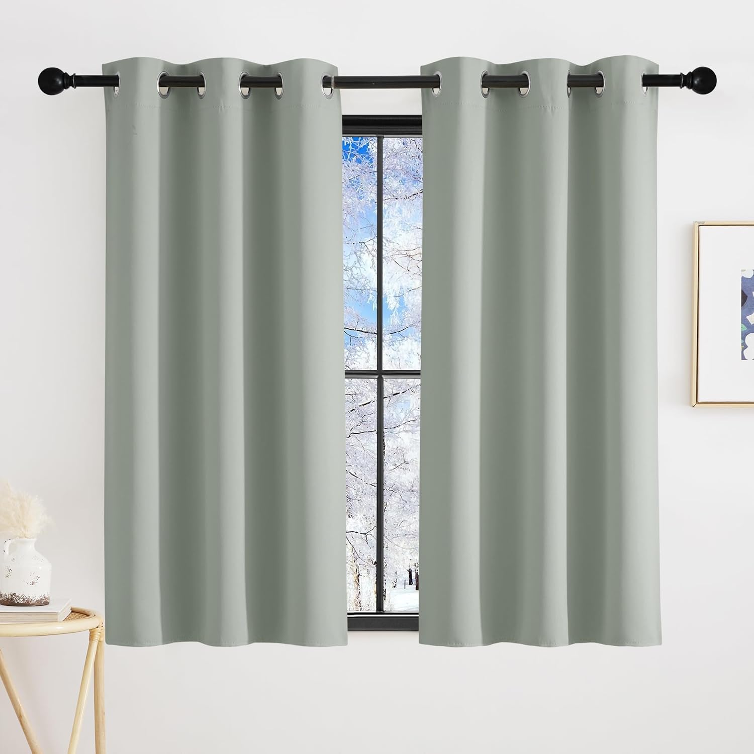 KGORGE Salbeigrün Verdunklungsvorhänge mit Ösen für Kinderzimmer, 2er-Set (100 x 90 cm)