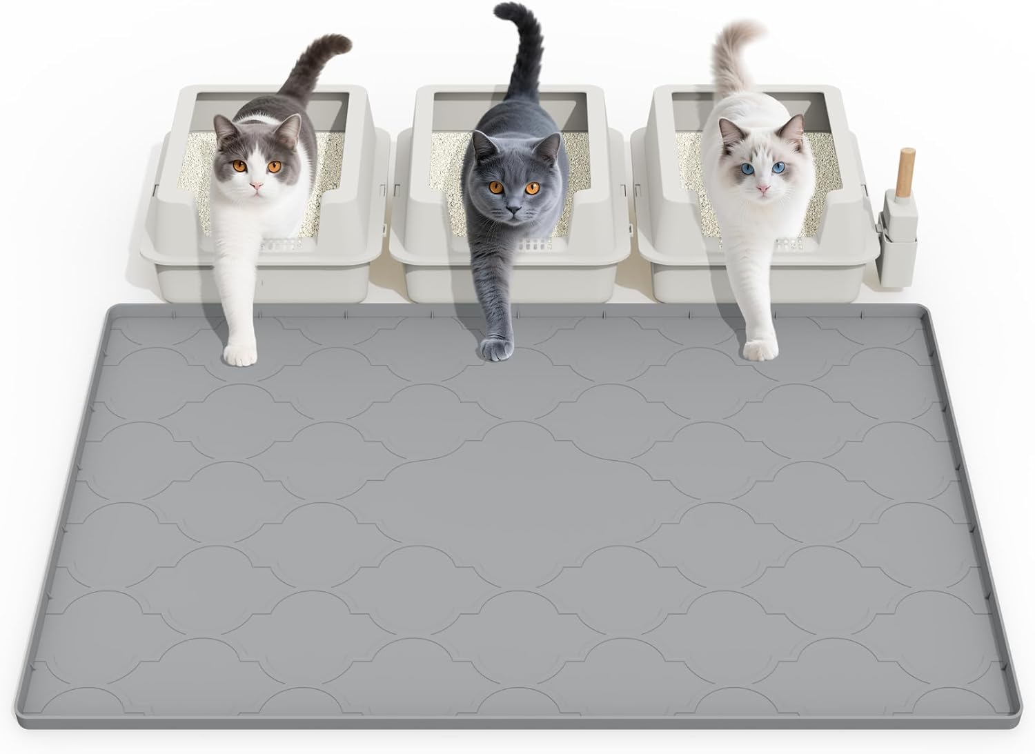 - Bartuke große Katzenstreu-Matte mit Spielzeug-Ball (Silikon) 34’’ x 22’’ – Hellgrau