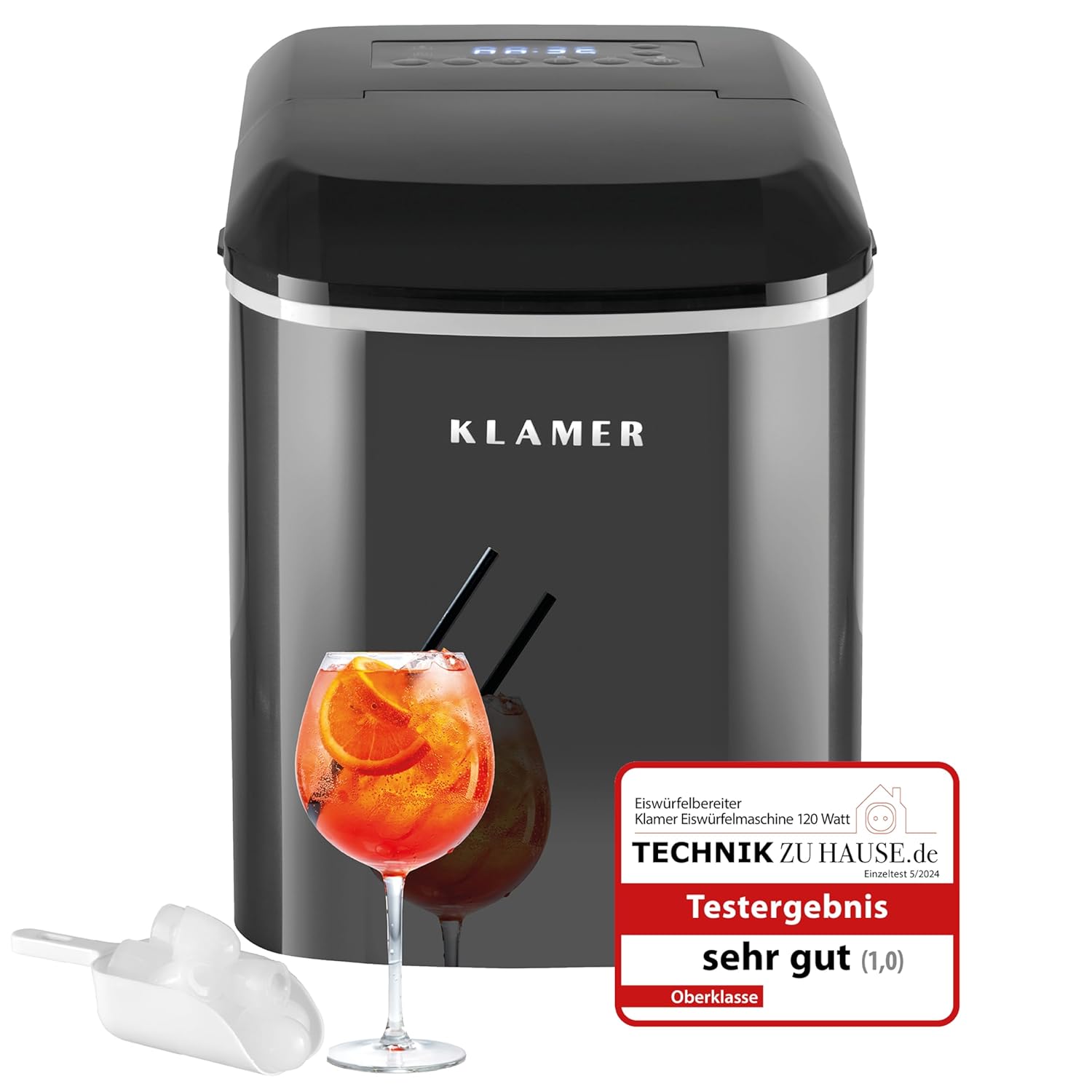 Die kompakte KLAMER Eiswürfelmaschine klein überzeugt durch zuverlässige Leistungsdaten und eine benutzerfreundliche Bedienung. Mit ihrem großen 2,1 L Wassertank sorgt sie konstant für frische Eiswürfel, ohne häufig nachzufüllen. Die integrierte Eisschaufel erleichtert das Entnehmen der Würfel zusätzlich im Alltag. Zwei verfügbare Eiswürfelgrößen ermöglichen flexibel kühle Getränke gleichermaßen für Cocktails oder Erfrischungen. Dank moderner Technik arbeitet der Kompressor besonders leise, sodass der Betrieb auch in offenen Küchen angenehm bleibt. Das Gerät ist mittels Druckknopf-Display einfach zu steuern und bietet Vorlaufzeit- sowie Timer-Funktionen, um Eis genau dann bereit zu haben, wenn es gebraucht wird. Die transparente Abdeckklappe und der herausnehmbare Eiswürfelbehälter ermöglichen jederzeit einen Blick auf den aktuellen Füllstand. Auf Wunsch steht eine Selbstreinigungsfunktion zur Verfügung, die Wartung erleichtert und Hygiene sicherstellt. Die kompakte Bauweise fügt sich in jede Küche ein, ohne viel Platz zu beanspruchen. Die Herstellung erfolgt effizient in Zyklen, wodurch innerhalb kurzer Zeit regelmäßig frische Eiswürfel entstehen. Das Gerät produziert bis zu 15 kg Eiswürfel pro Tag, ideal für Familienabende oder kleinere Partys. Die robuste Verarbeitung sorgt für eine langfristige Nutzung, während das klare Design in Schwarz optisch zu vielen Einrichtungsstilen passt. Mit dem digitalen Rezeptbuch erhalten Nutzer Inspiration für kreative Cocktails und kühlende Getränke.