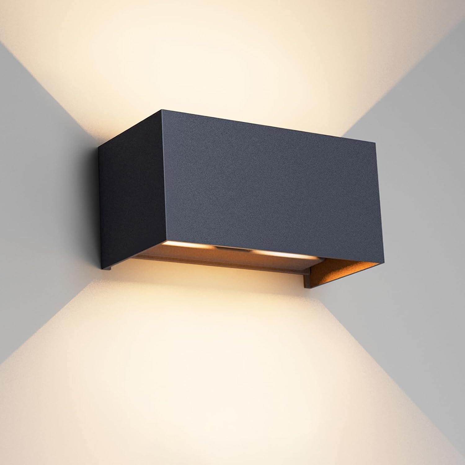 Die Leuchte ist als Wandleuchte für den Innen- und vor allem Außenbereich gedacht. Sie kommt in anthrazit, mit warmweißem Licht (3000K) und arbeitet mit LED. Das Gehäuse ist aus Aluminium gefertigt, und die Leuchte wird als IP65 beschrieben – also als wasser- bzw. spritzwassergeschützt für typische Außenlagen.