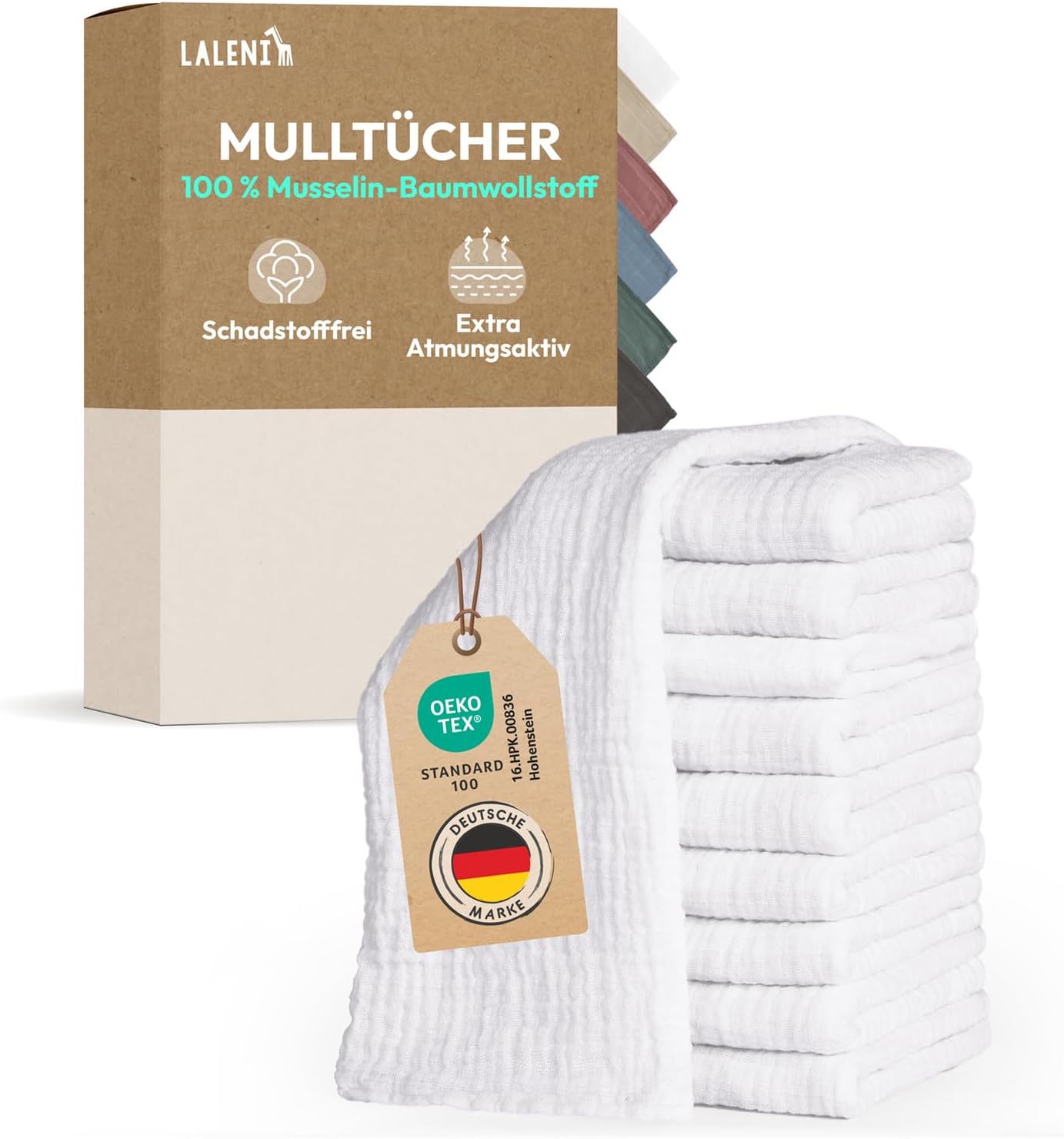 Laleni Spucktücher Baby im 10er Set sind klassische Mulltücher/Musselintücher für den Baby-Alltag. Wenn du Spucke, kleine Pfützen und häufiges Nachwischen nicht dem Zufall überlassen willst, sind solche Tücher praktisch, weil sie sich vielseitig einsetzen lassen: als Spucktuch, als Unterlage auf der Wickelstation oder auch als improvisierte Stoffwindel-Alternative. Wichtig ist dabei weniger „nice to have“, sondern die Basics: hier wird mit 100% Baumwolle gearbeitet und laut Hersteller sind die Tücher auf Schadstoffe geprüft.