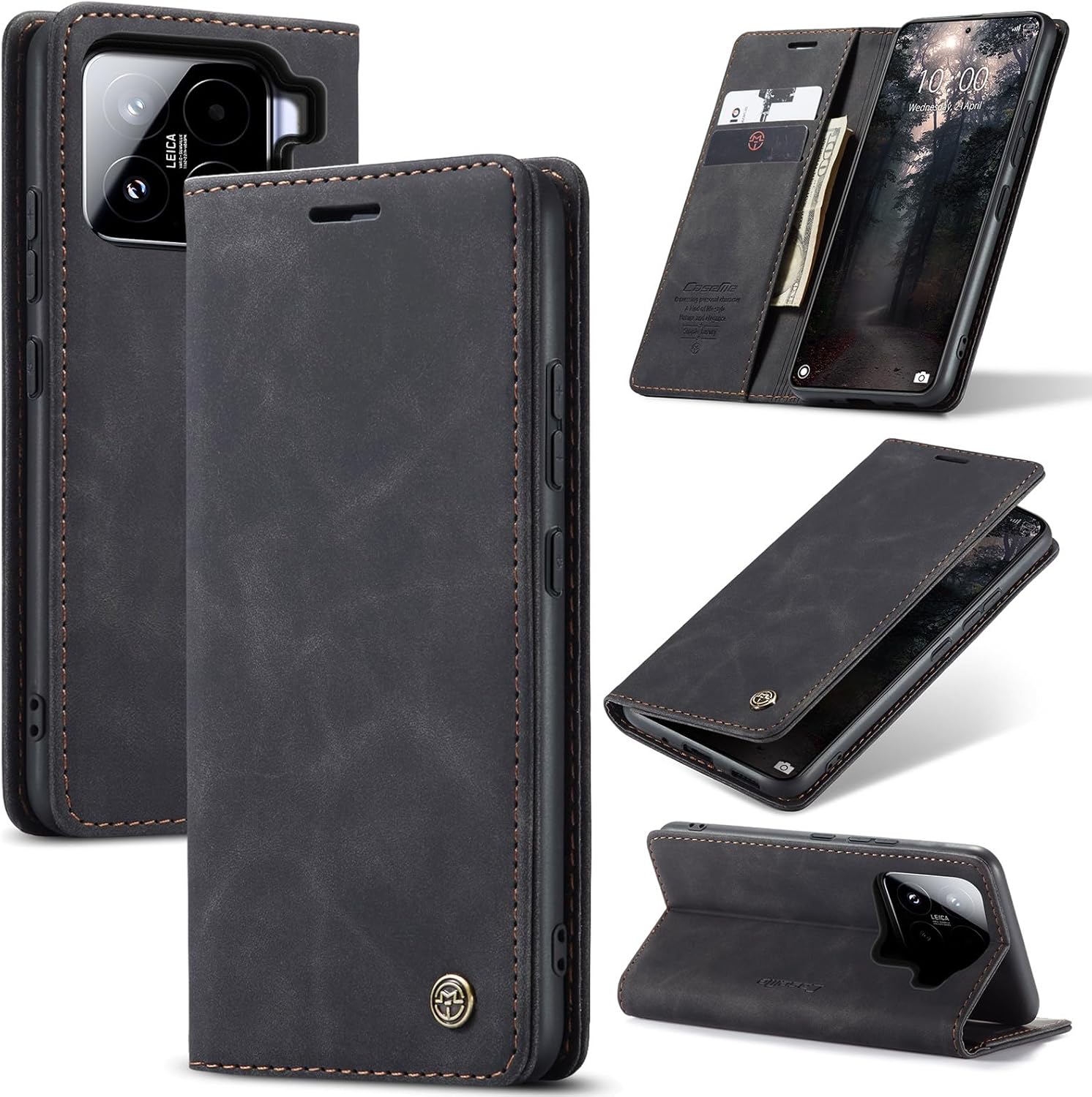 Lanranwa Handyhülle für Xiaomi 15 5G – Premium Flip Case aus PU-Leder mit Kartenfächern, Magnetverschluss und Standfunktion (Schwarz)