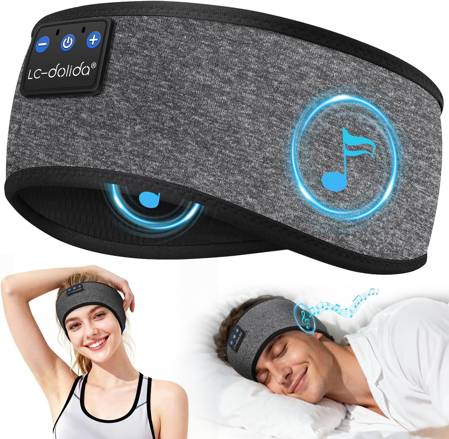 LC-dolida Schlafkopfhörer Bluetooth Stirnband (Schlaf & Seitenschläfer) mit HiFi-Stereo, bis zu 15 Std. Laufzeit