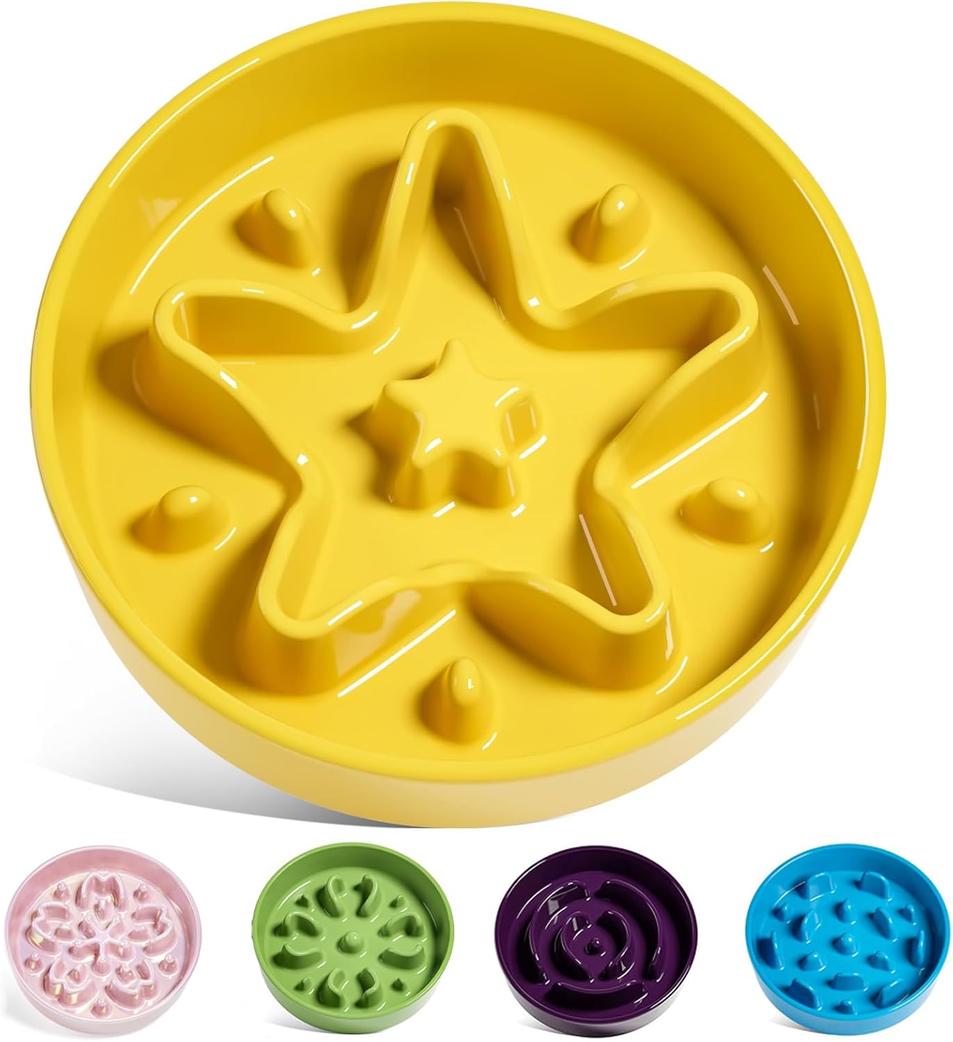 LE TAUCI Keramik-Hundenapf für langsames Fressen (Slow Food) mit Rillen & Labyrinthmuster, 350 ml, Sterngelb