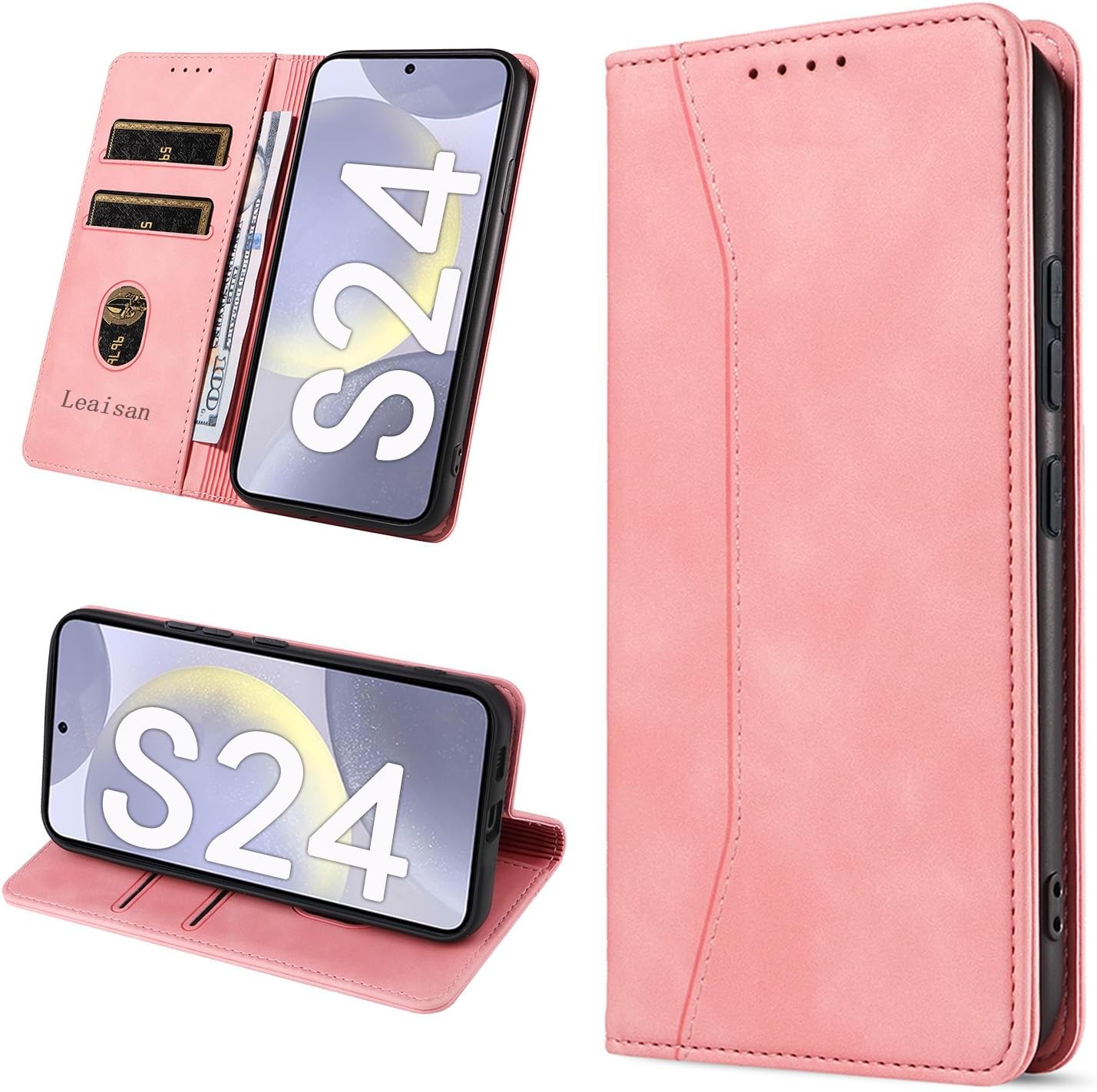Leaisan Premium Leder Flip Hülle für Samsung Galaxy S24 – Rose Gold mit Kartenfächern, Standfunktion und Stoßschutz
