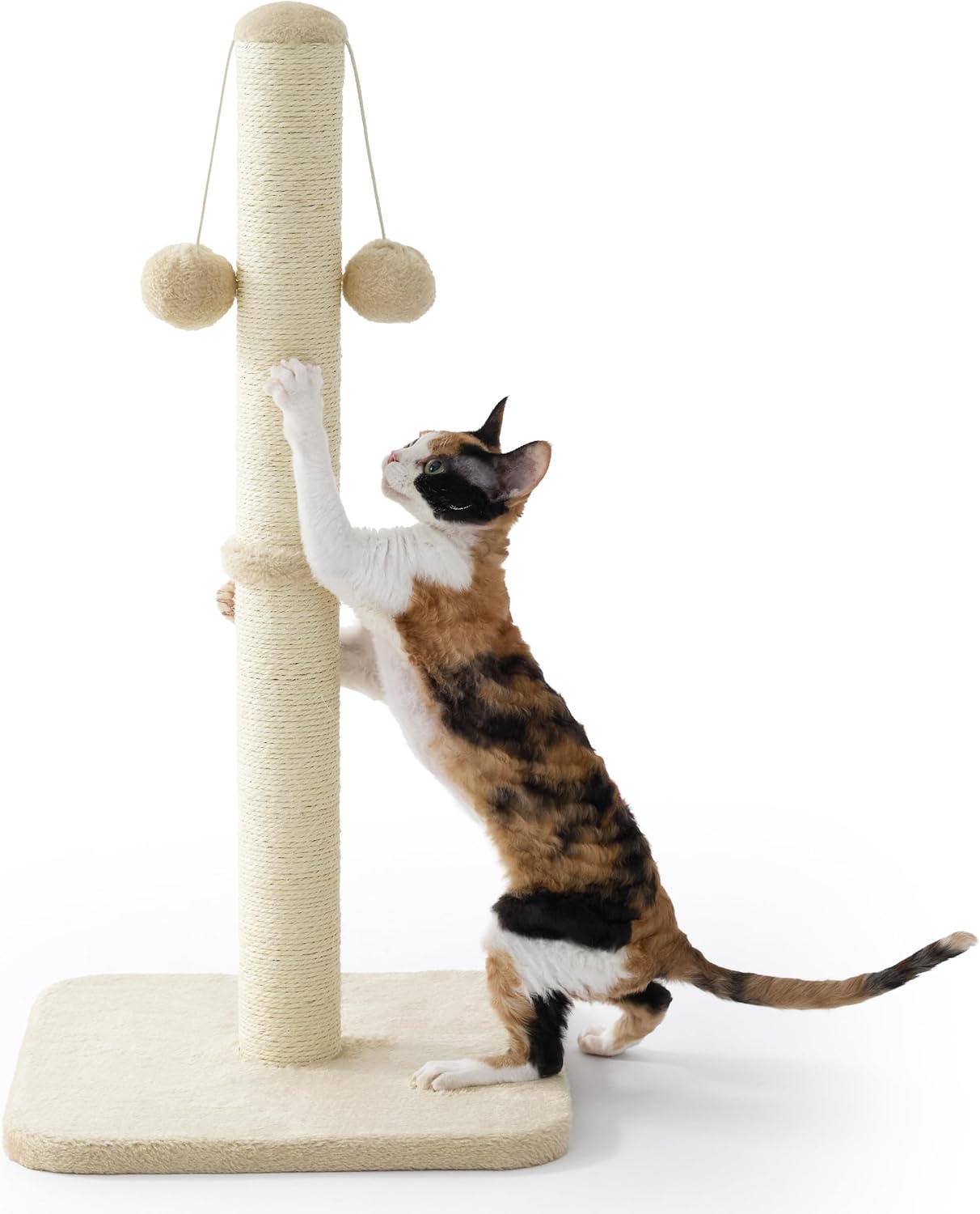 Lesure Kratzsäule Mittelgroß für Indoor-Katzen (36 × 36 × 74 cm) mit hängendem Spielball, Sisalseil & stabiler Basis – Beige