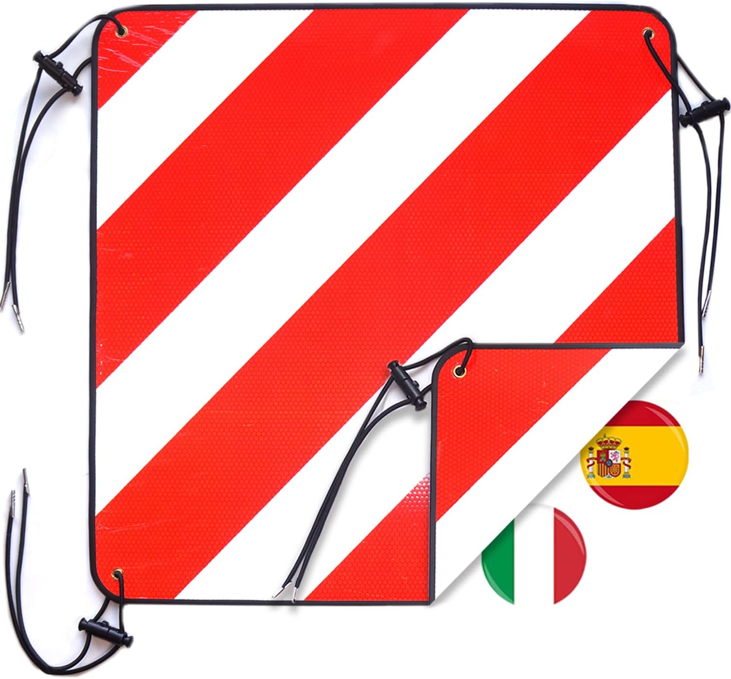 LIEBFIT 2in1 reflektierende Warntafeln für Italien & Spanien (Aluminium, 50 x 50 cm) mit 4 Spanngurten