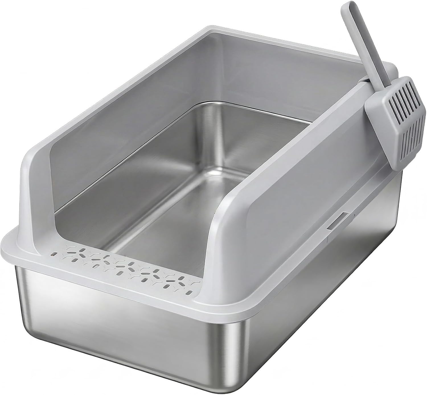 - Edelstahl-Katzenklo XXL mit Schaufel von Yangbaga – 60×40×30 cm, hoher Rand