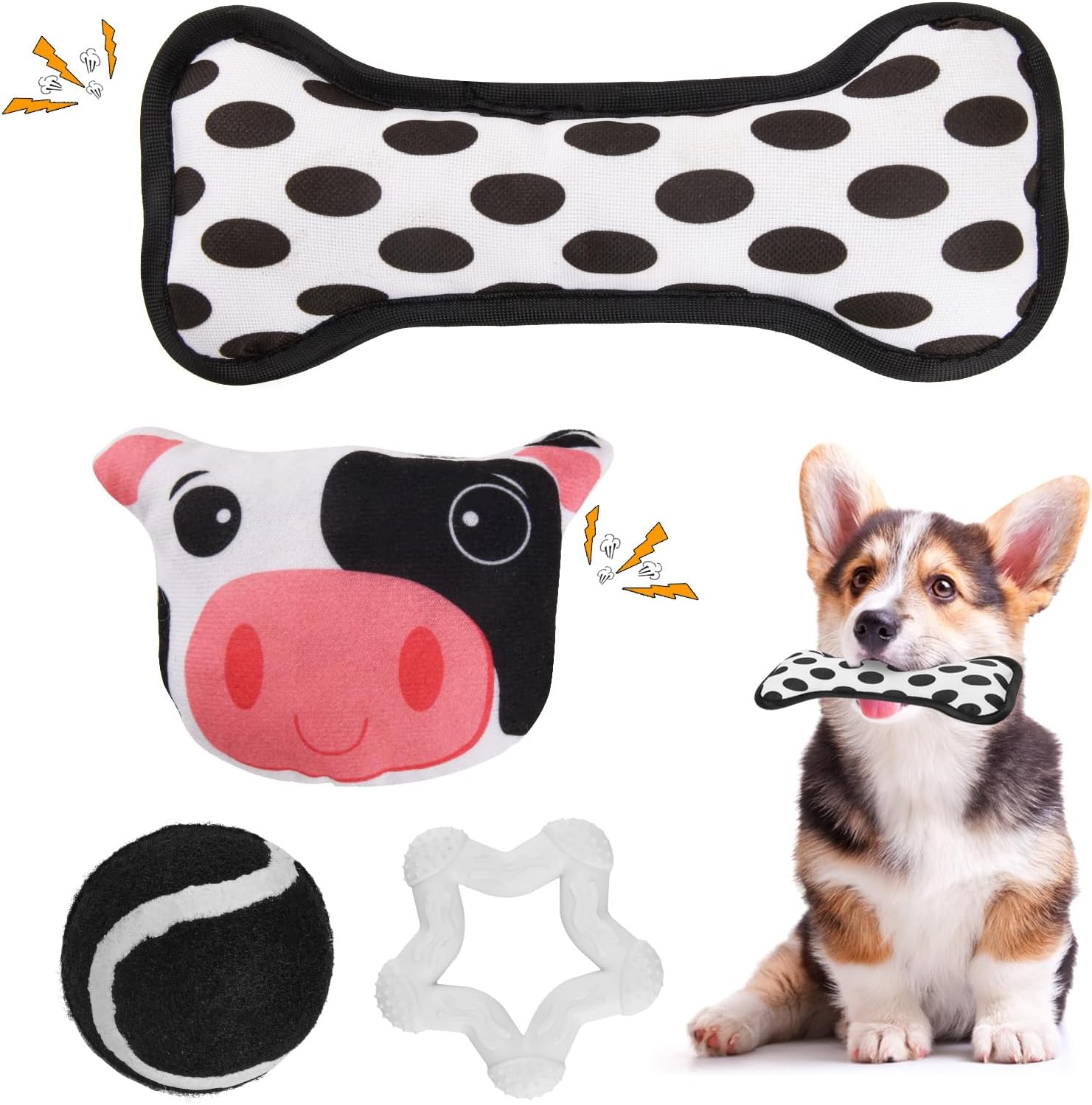 LIFLIX Hundespielzeug für kleine Hunde & Welpen (4-teilig) – interaktiver Kauspielzeug-Mix mit Quietschball und Kauformen