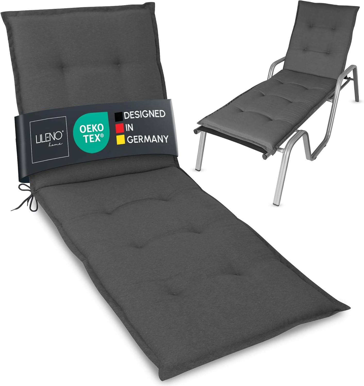 LILENO HOME Sonnenliege Auflage im 1-Set (Rollliege) – Uni Anthrazit, UV-geschützt