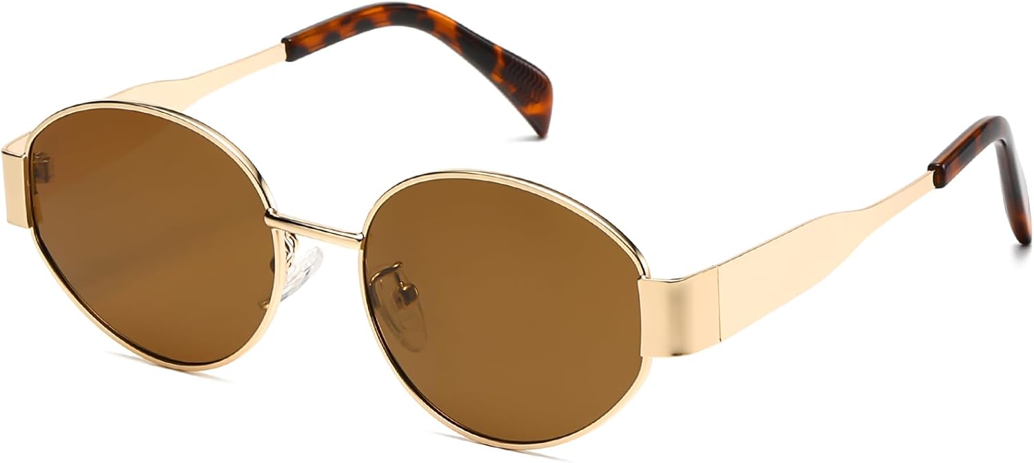 Das retro-ovale Rahmenkonzept wirkt bewusst klassisch: goldfarbene Metalloptik, dazu eine ovale Form, die vielseitig zu unterschiedlichen Looks passen soll. Der Hersteller nennt dafür verschiedene Anlässe – von Einkaufen und Freizeit bis hin zu Festen oder Festivals.