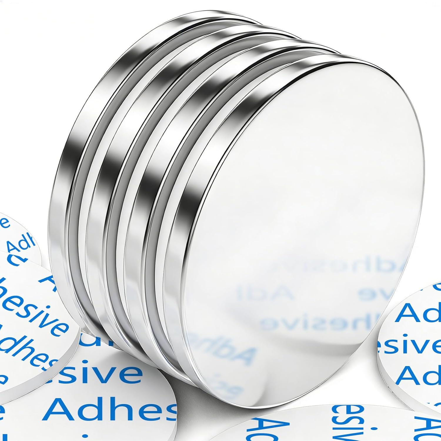 - Neodym-Scheibenmagnete „Stark“ – 6 Stück (30 x 3 mm) mit doppelseitigem Klebstoff, Ziehkraft bis 8 kg