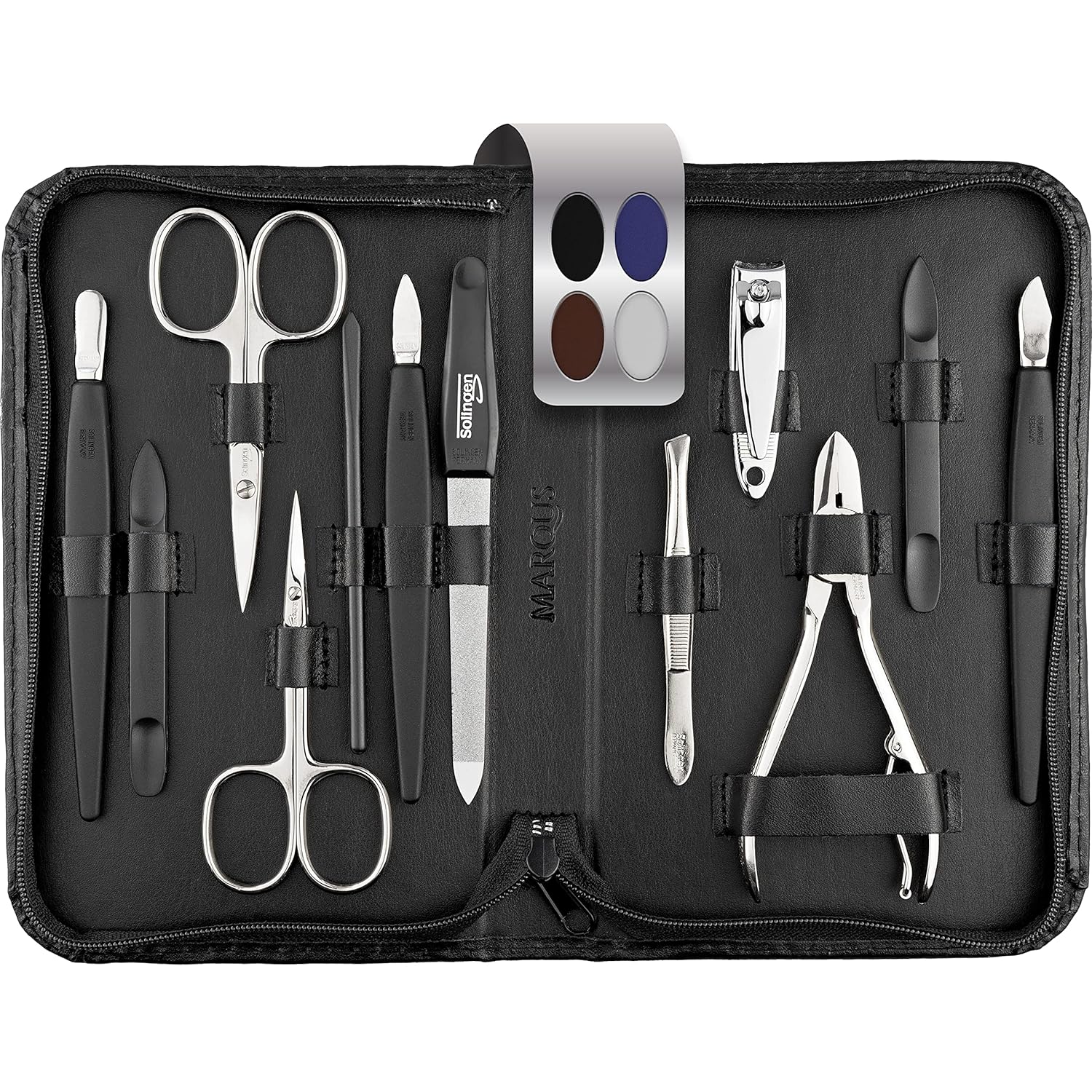 marQus Solingen Mega Maniküre & Pediküre Set (12 Teile) im Echt-Leder Etui, schwarz