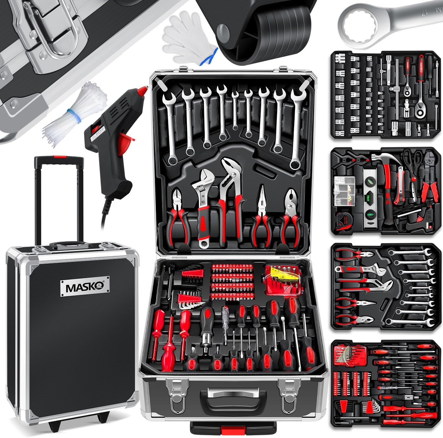 MASKO Werkzeugkoffer 1.400-teilig im Aluminiumkoffer mit Rollen (Trolley-Funktion)