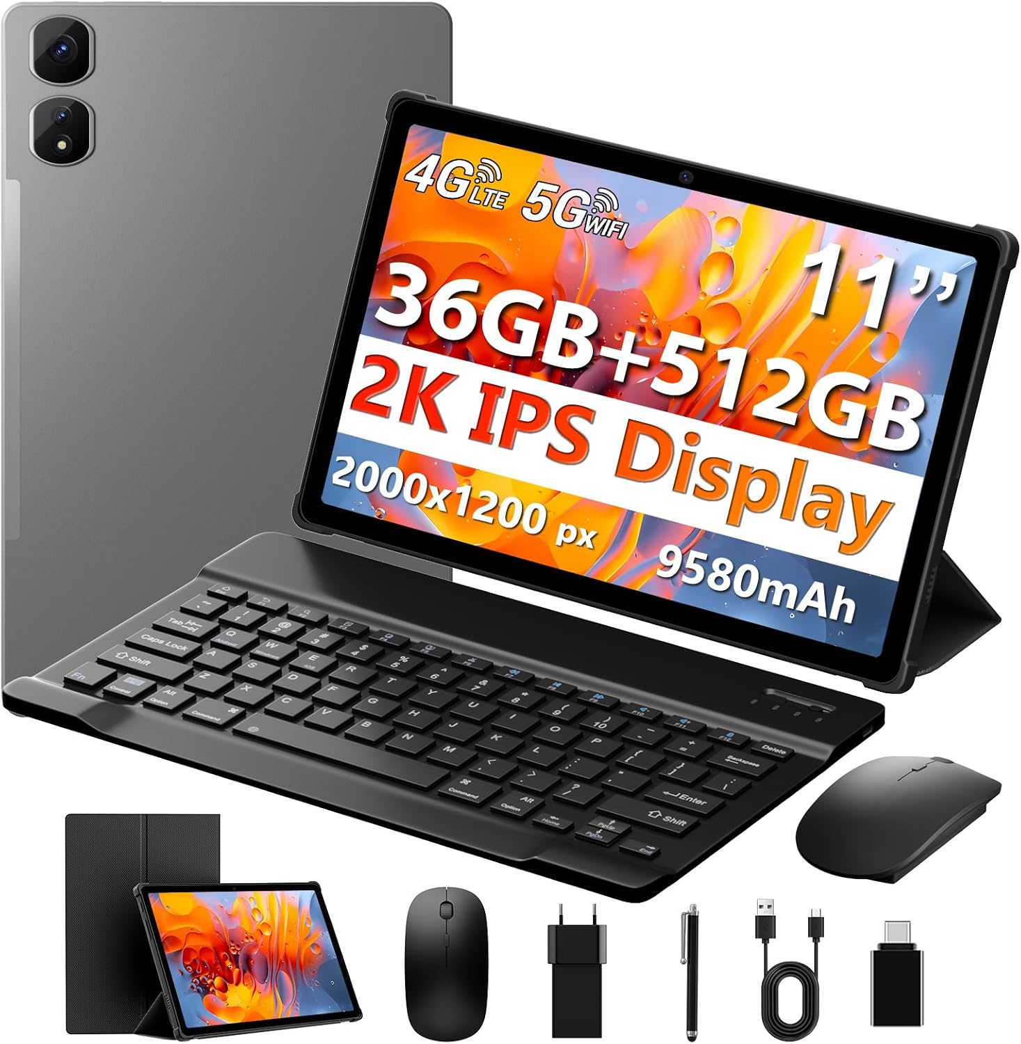 MAXLEGEN Tablet 11 Zoll 2K FHD mit 36GB RAM + 512GB ROM (1TB per microSD), 4G LTE Dual SIM + 5G WLAN, Android 15