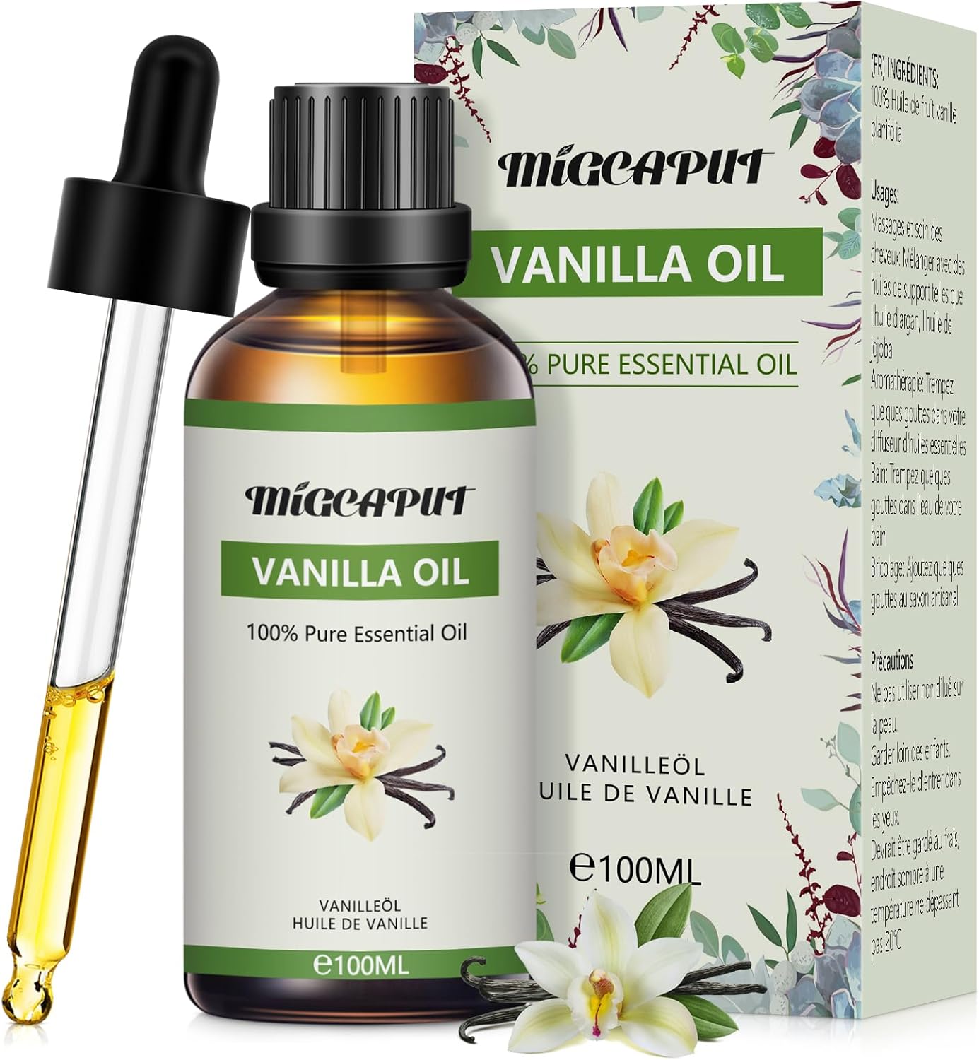 Migcaput Vanilleöl (ätherisches Öl) 100 ml – 100 % natürliches Aroma für Diffuser, Luftbefeuchter & Co.