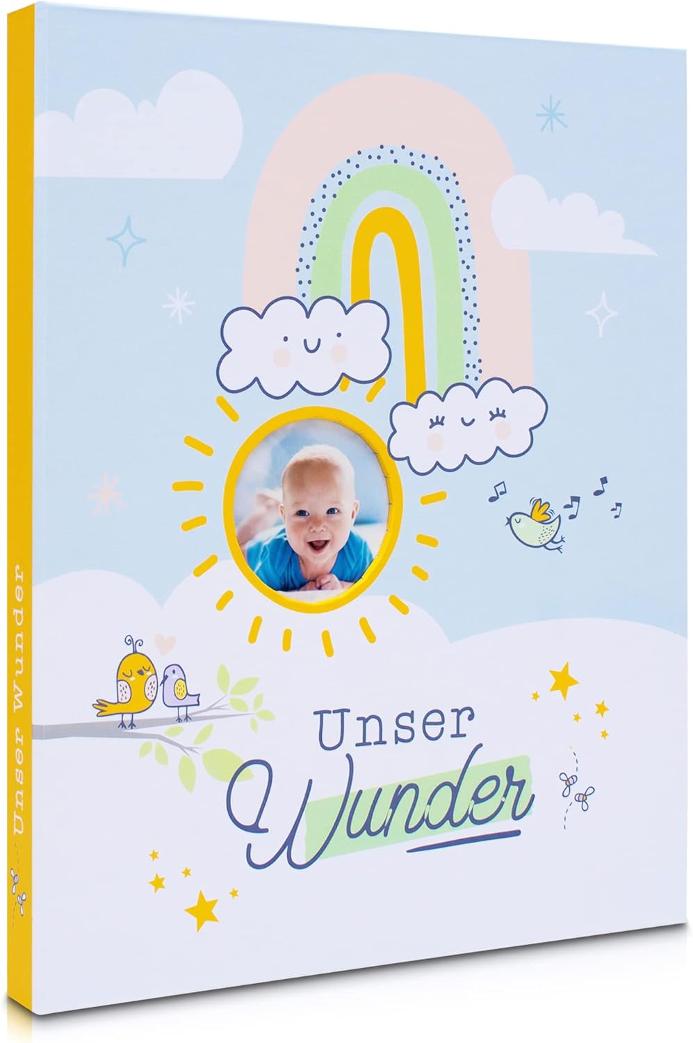 MilaBoo Unser Wunder: Babyalbum fürs erste Jahr mit Meilensteinstickern (Ringbuch, 29,5 x 23,5 cm)