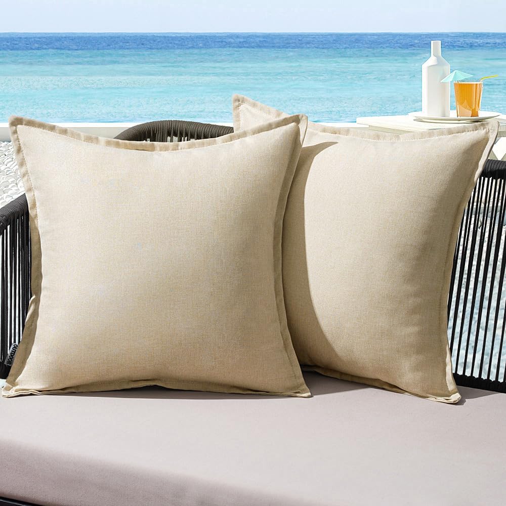 MIULEE Outdoor Kissenbezug wetterfest, 2er Set 50x50 cm in Beige (ohne Füllung)