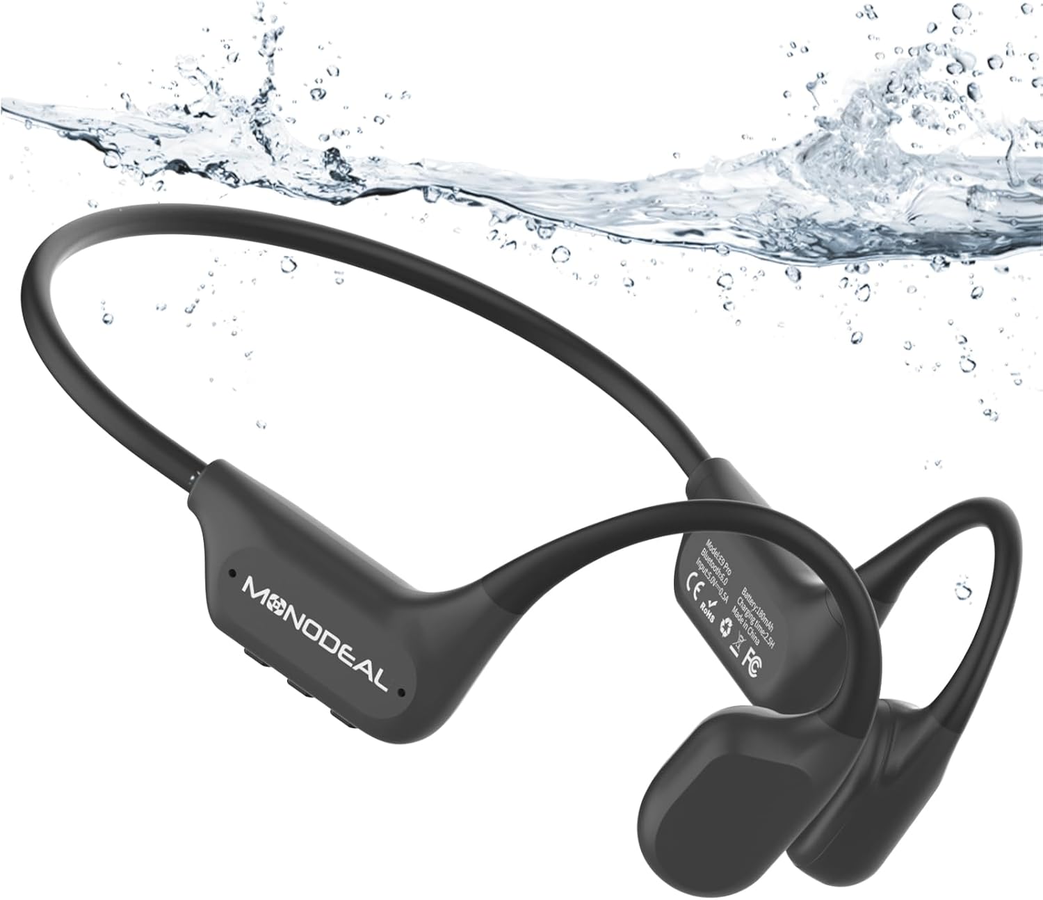MONODEAL Knochenschall-Kopfhörer fürs Schwimmen: Bluetooth 6.0, IPX8, 16 GB MP3